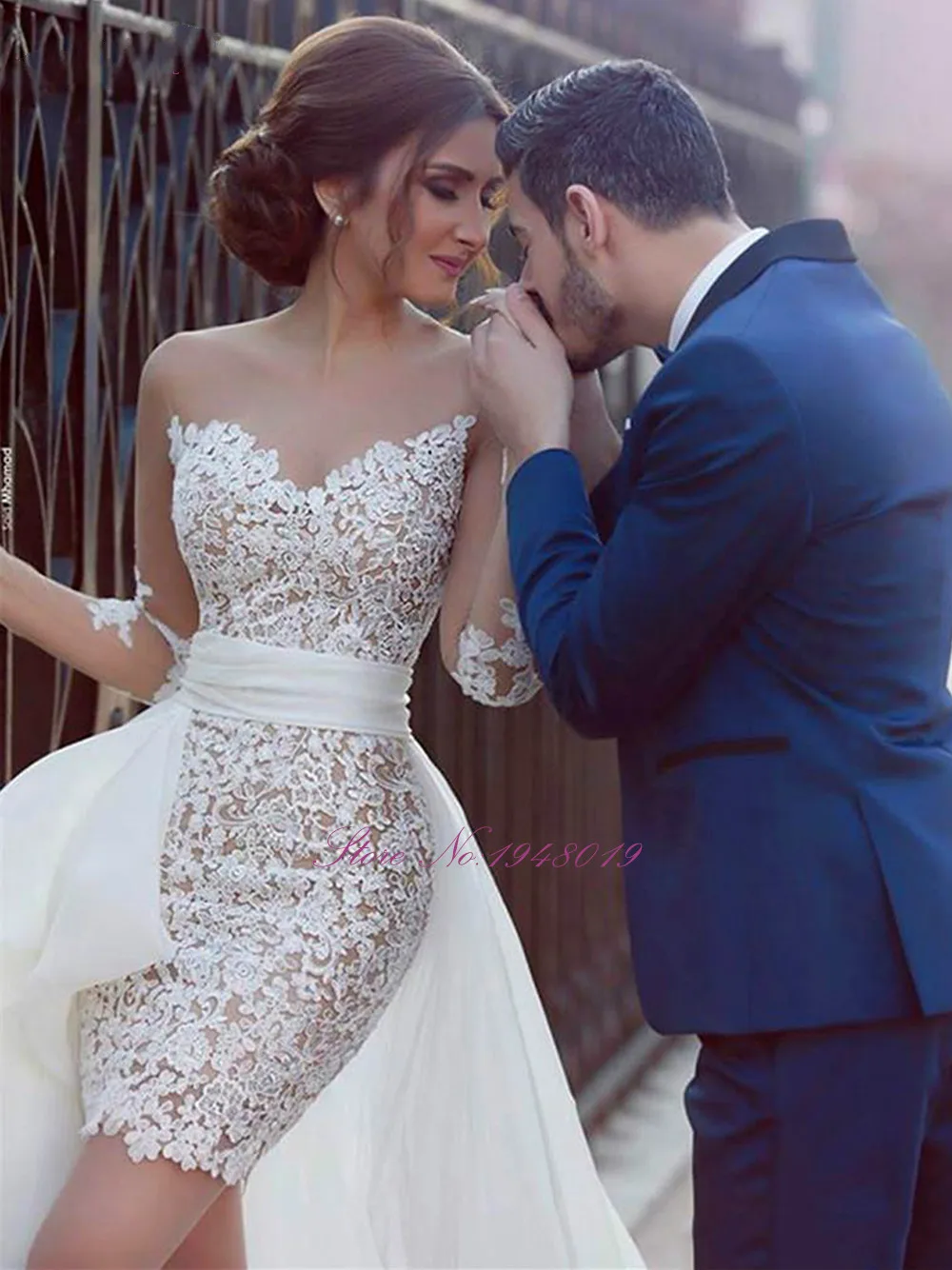 Женское винтажное платье-русалка, Элегантное Длинное Свадебное платье 2 в 1, пляжное платье невесты со съемной раковиной в стиле рок