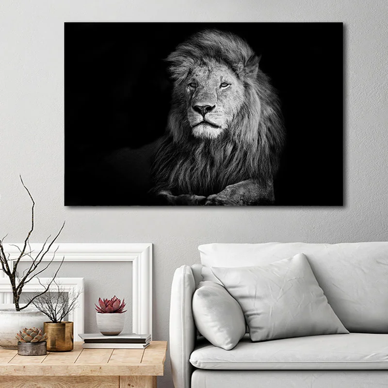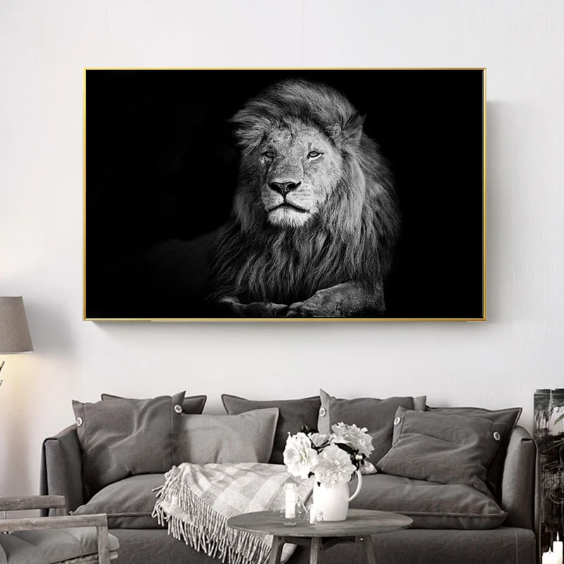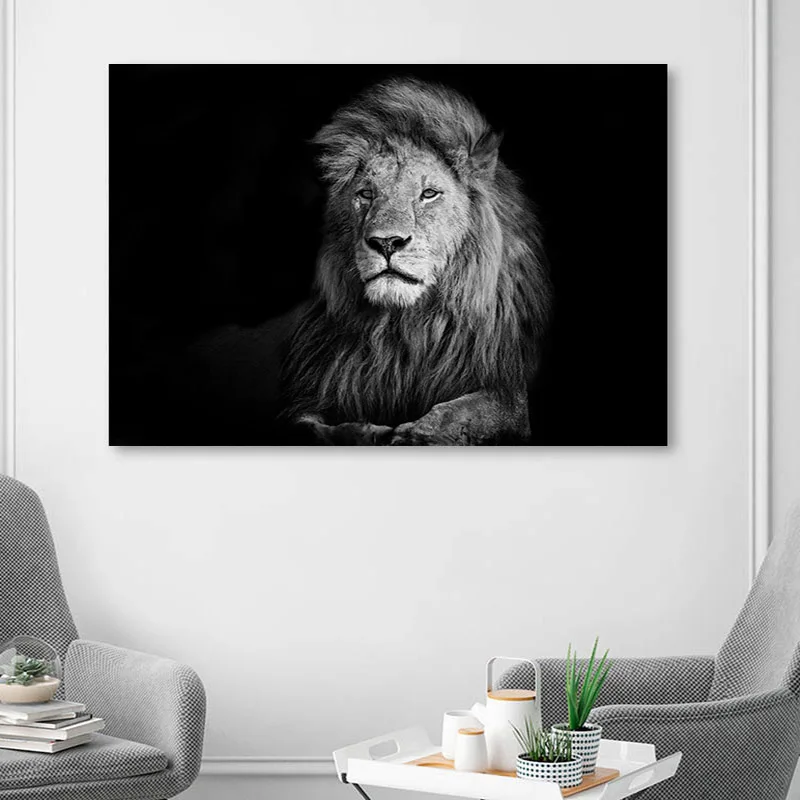 Настенный постер с изображением дикой природы и Льва, Настенная картина в виде черного и белого животного, в скандинавском стиле, простота, современный декор для гостиной и дома