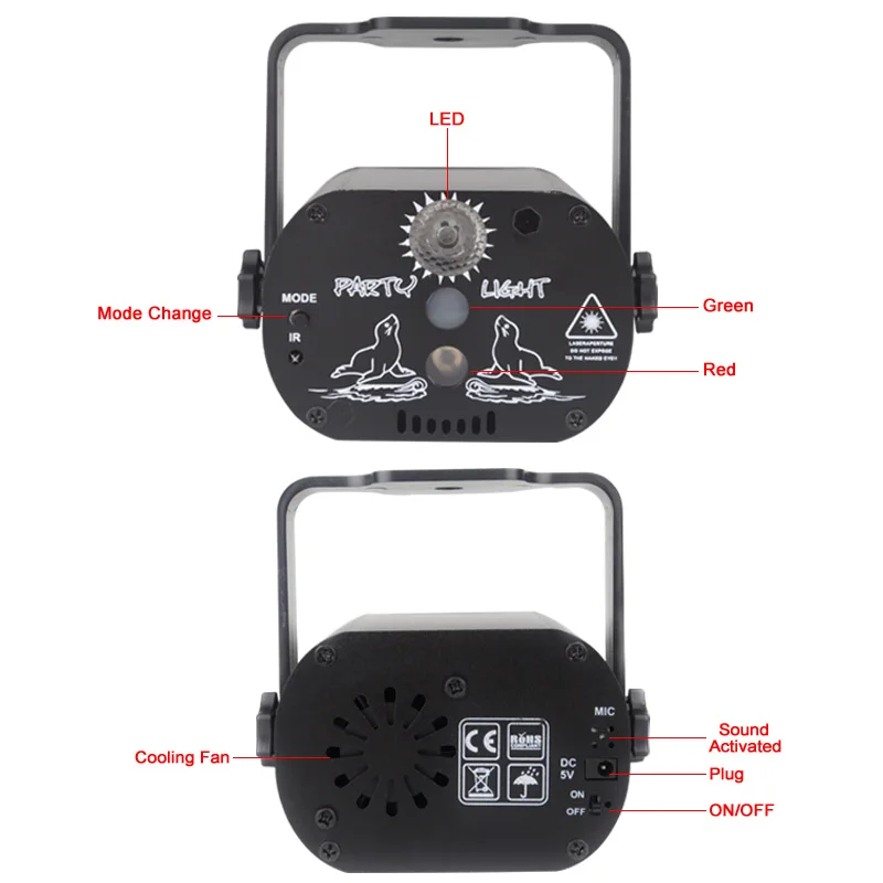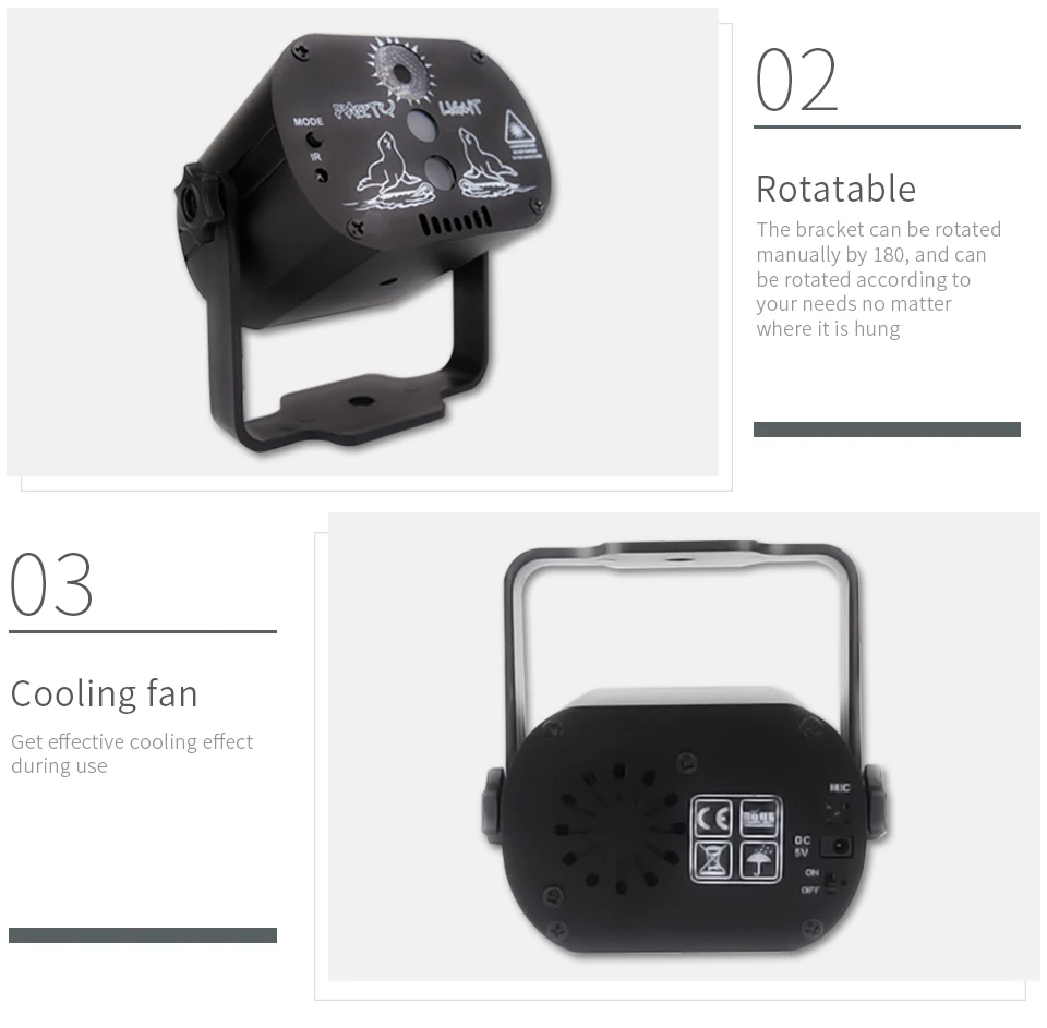 Лазерный прожектор YSH для дискотеки, вечевечерние НКИ, со звуковым управлением, зарядкой от USB