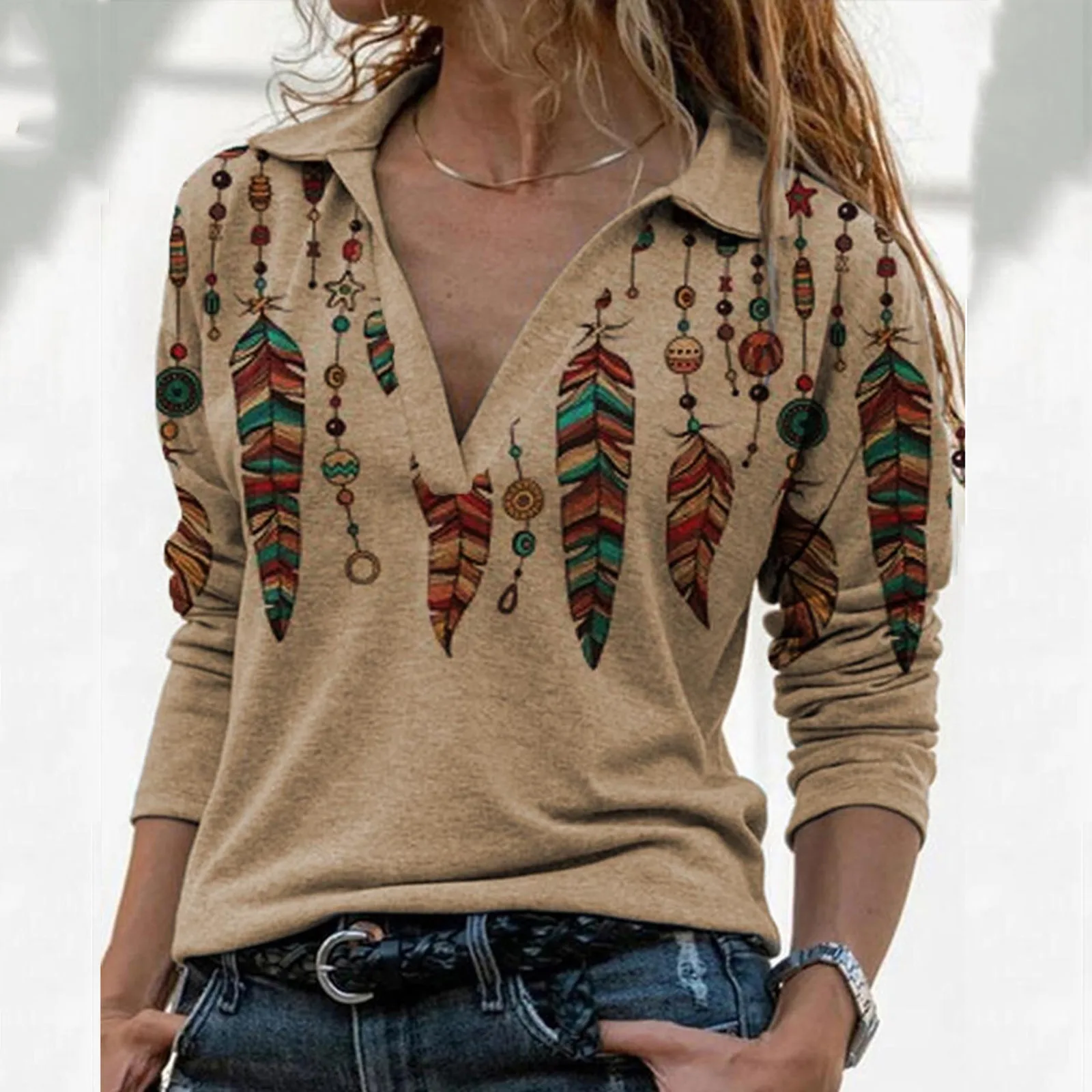 Модная женская Лоскутная рубашка с длинными рукавами и круглым вырезом в стиле ретро