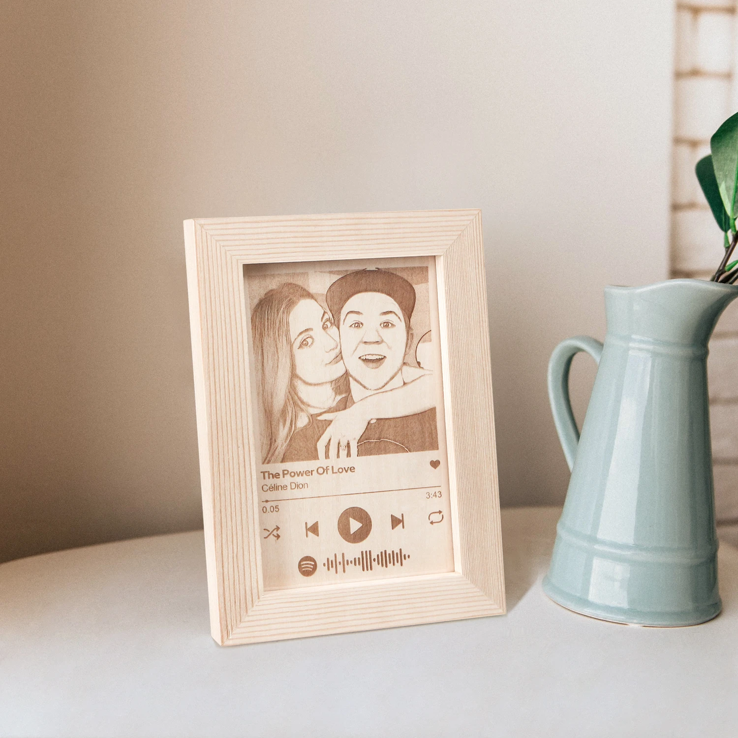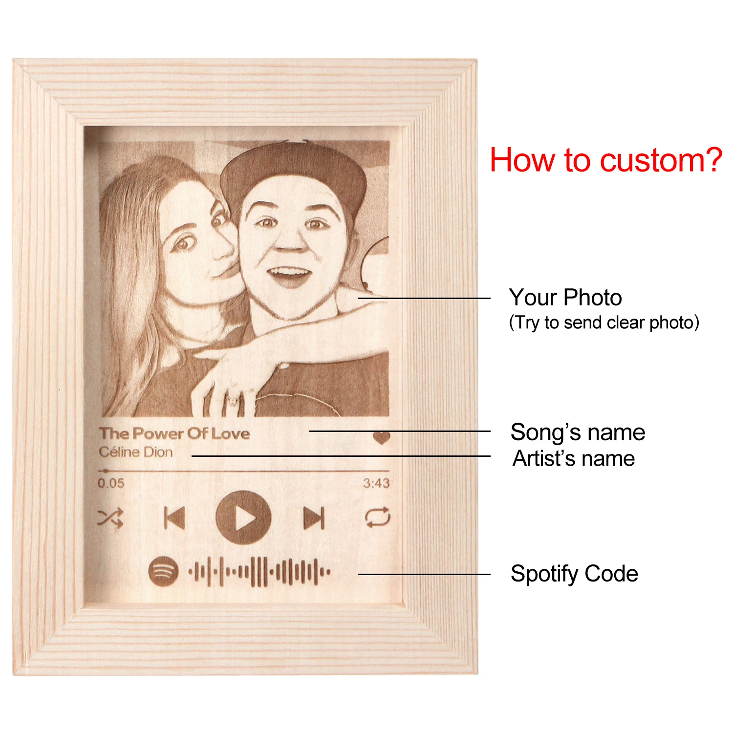 Spotify код фоторамка пользовательские фото гравировка на дереве рамка для фотографий на заказ из натурального дерева фоторамка подарок ко Дню Святого Валентина