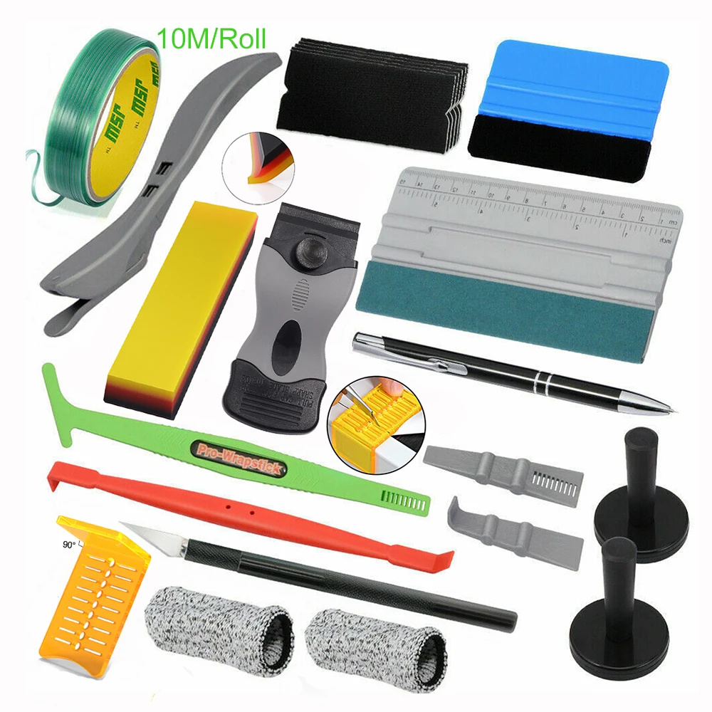 FOSHIO Автомобильная Тонировочная пленка для окон, скребок, скребок, 10 м, вязаная лента, набор инструментов для установки, углеродная наклейка, виниловый автомобильный комплект