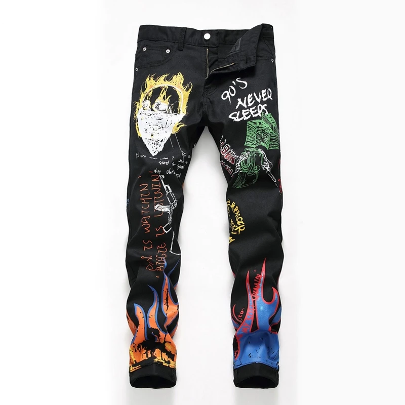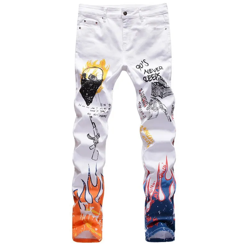 Уличные хипстерские Модные мужские Стрейчевые облегающие брюки Cowboys Индивидуальные джинсовые брюки с цифровым принтом Мужские повседневные Прямые джинсы