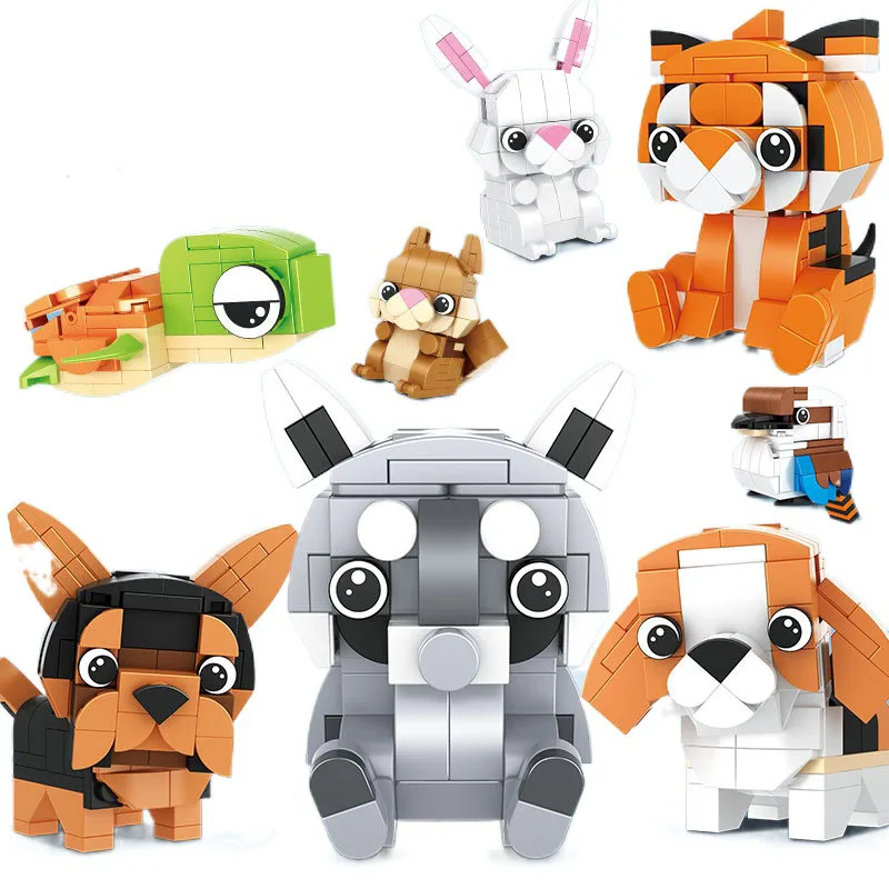8 шт. креативный мини мультяшный животный блок набор 3D DIY Черепаха енот белка кролик Тигр Kookaburra строительные кирпичные игрушки для детей