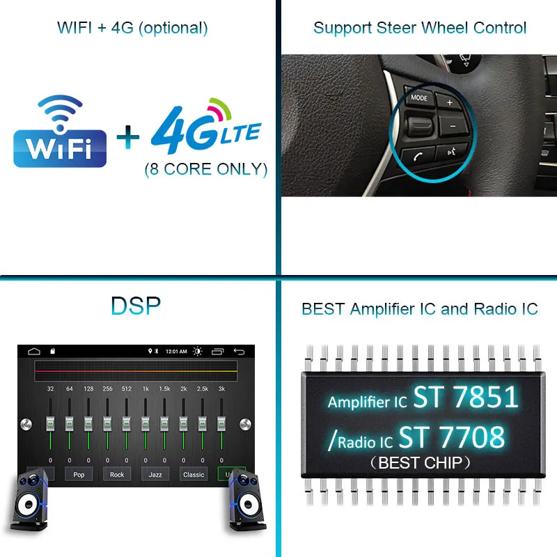 С 30 звуковыми эффектами DSP качество звука транспортного средства, цвет тона, выражение реверберации является изысканным и бесплатным. DSP-цифровая система усиления. Это делает голос al лучше, чем раньше, и делает радиосигнал лучше, чем раньше. Только менее высокая версия автомобиля имеет заводскую систему D5P на рынке. Если вы покупаете этот чип. В будущем у вашего автомобиля будет DSP система.