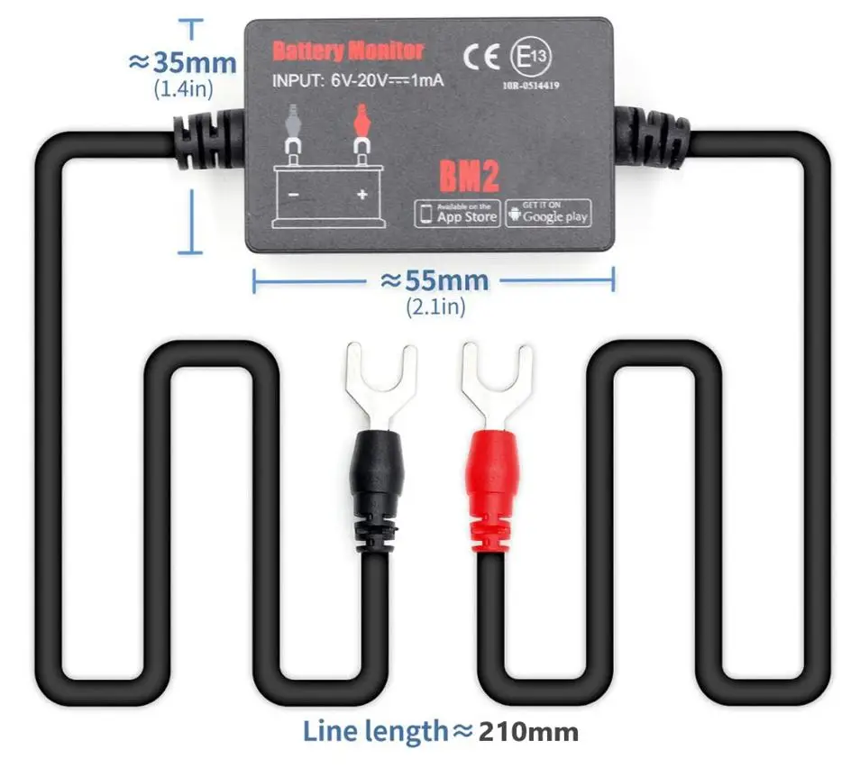 BM2 Bluetooth 4.0 монитор батареи расширенные характеристики:Устанавливается в автомобильную батарею в режиме реального времени через мобильный телефон App.Перечислите время каждого дривинаСовместим со всеми 12-вольтовой аккумуляторных батарей транспортного средстваПроверьте систему зарядки и поворота (генератор)Автоматическое обнаружение запуска двигателяПолучайте уведомления о состоянии батареи при входе в диапазон BluetoothПоказывает информацию о напряжении и зарядке. Когда пользователь находится близко к транспортному средству, не нужно открывать приложениеАвтоматическая синхронизация при вводе диапазона BluetoothДанные, хранящиеся в мониторе батареи до 35 дней, если они не синхронизируютсяОповещает мобильный телефон, если некоторые данные ненормальныПроверьте пусковую (скручивающую) систему при каждом запуске двигателяПроверьте исходное Напряжение каждой сотой секунды при запуске двигателяОбзор истории графическиЗащита от короткого замыкания и обратного соединения