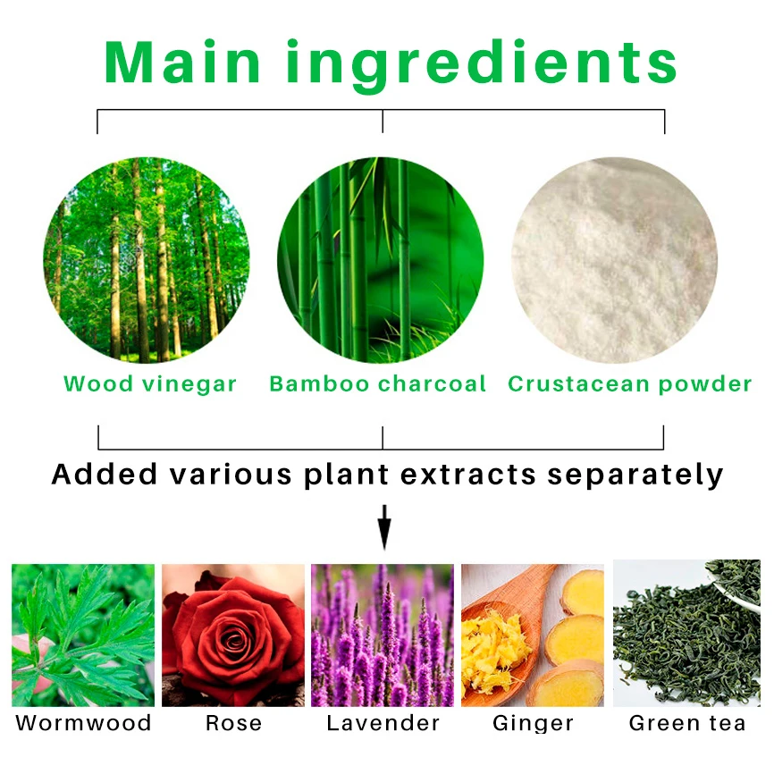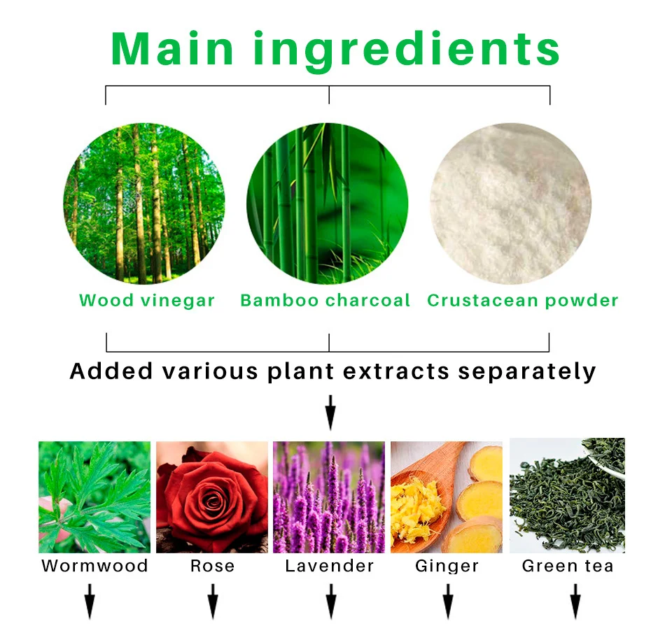 МатериалBamboo charcoal, bamboo vinegar, wormwood, ginger