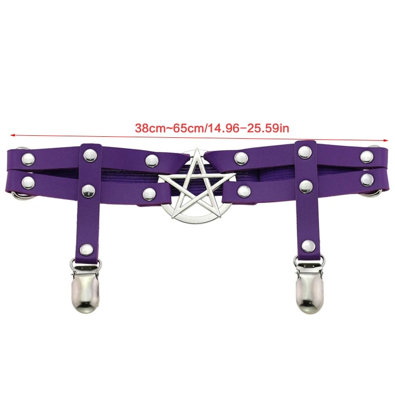 Особенности:100% новый и высокое качествоПодвязка на бедро: заклепки и бант спереди, очень милые.Гофрированное кружевное кольцо для ног с милыми клипсами в виде сердца, эластичное и регулируемое.Высокоэластичный материал, С нескользящими зажимами, вы не беспокоитесь о том, что он упадет.Можно носить под платье и юбку или с гольфами, которые можно носить в качестве модного аксессуара с шортами.Отлично подходит для Рейв, в стиле панк-рок, фестиваль, шар), баррикадное заграждение, танцы, косплей, вечерние, костюмы на Хэллоуин, для ночного клуба, бар или маскарадные костюмы, для выступления на сцене и т. д.Только 1 пояс для подвязки, другие аксессуары на фото не включены!