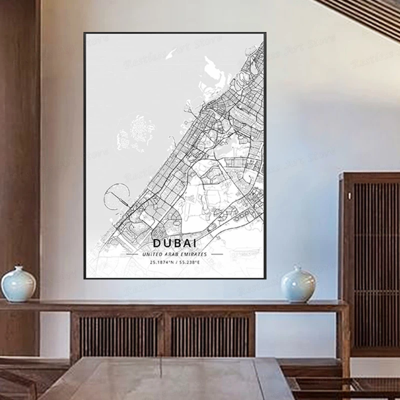 Черно-белый Тегеран Иран белая Широта Долгота холст Художественная ...
