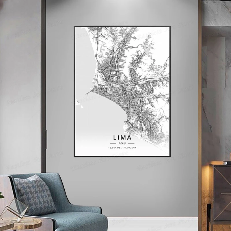 Черно-белый Тегеран Иран белая Широта Долгота холст Художественная ...