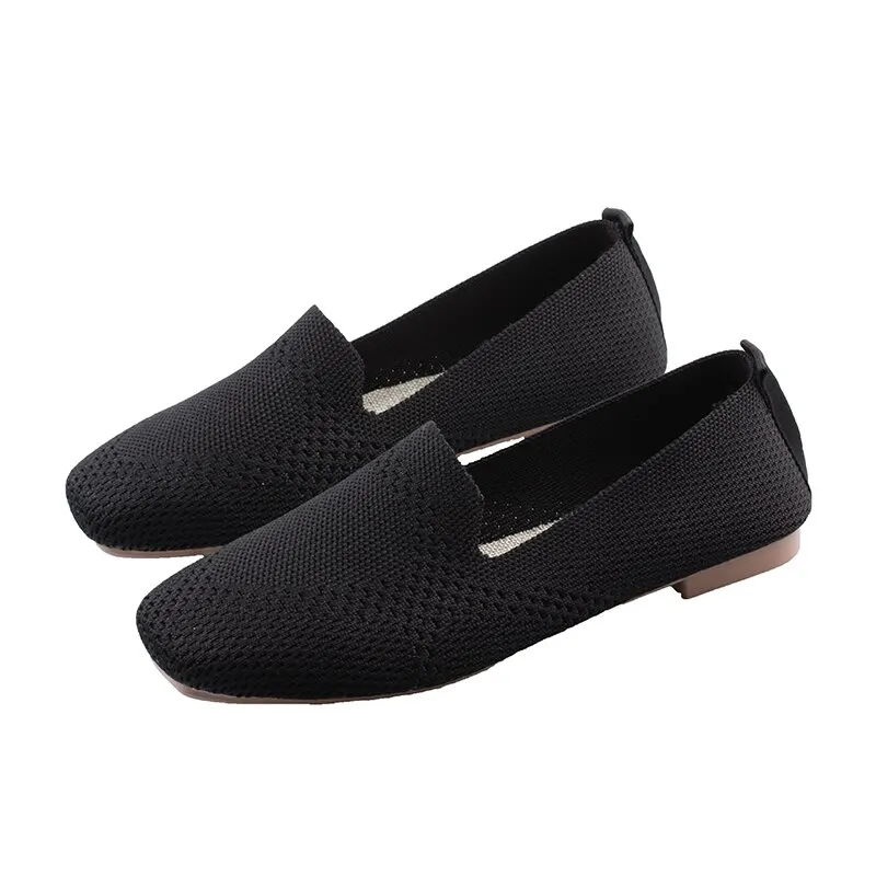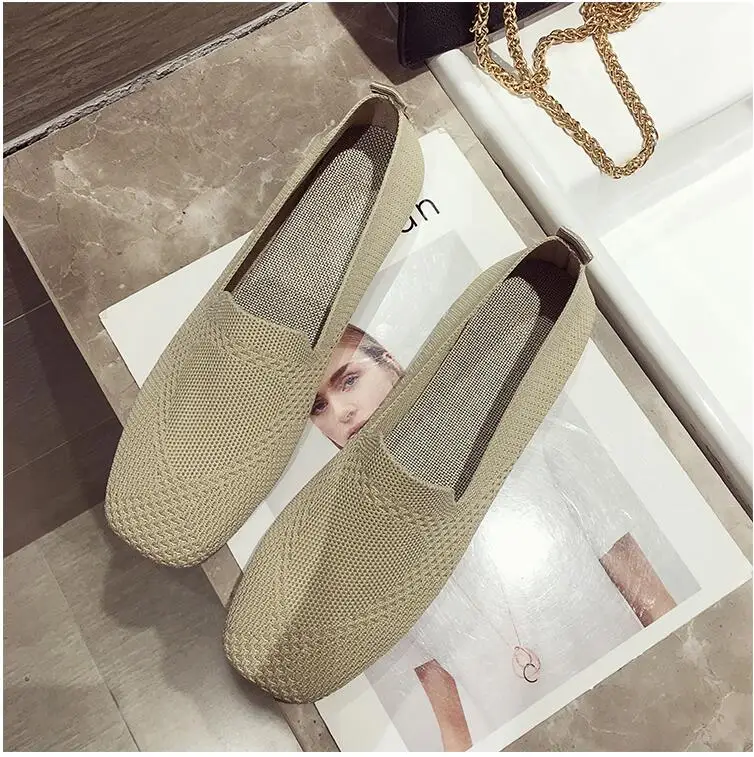 Женские балетки на плоской подошве, вязаные, дышащие, с квадратным ...