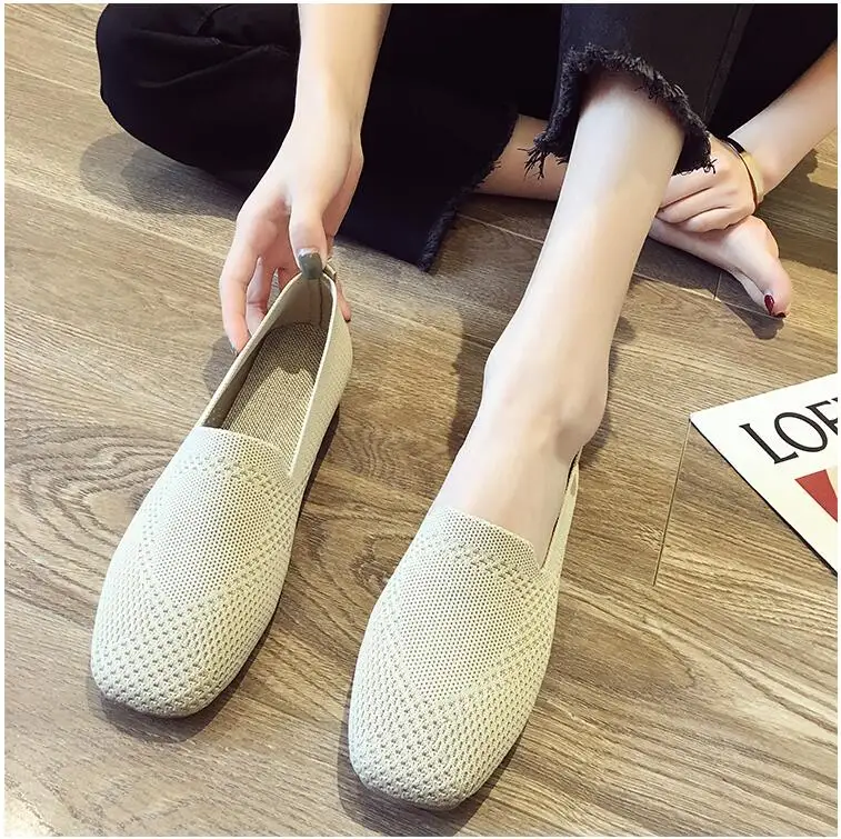 Новинка весны 2020, женские балетки размера плюс, трикотажные дышащ...