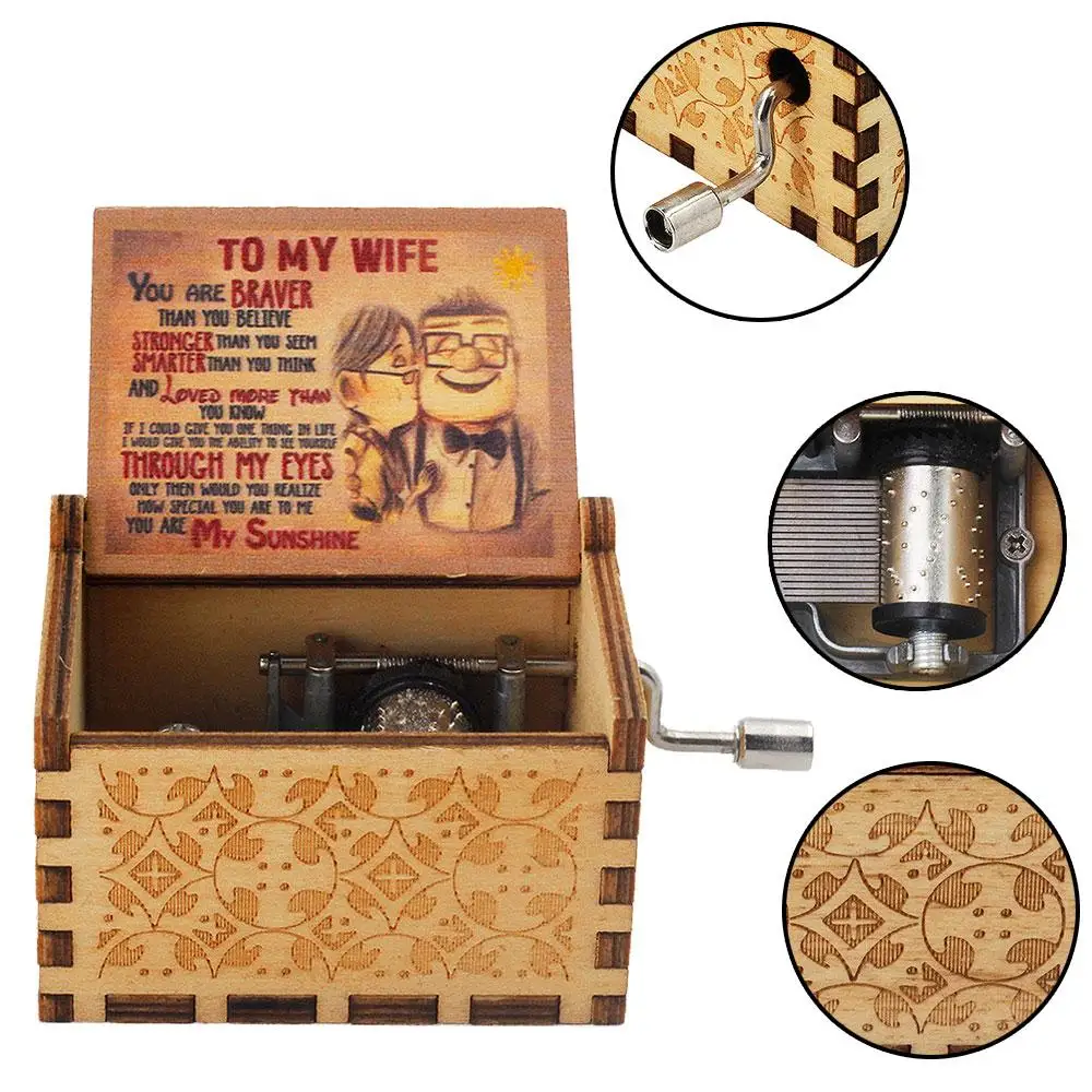 Идеальный подарок на праздник: эта красивая деревянная музыкальная шкатулка с содержательным сообщением, выгравированным изнутри шкатулки. Сделано как хорошее качество и отлично подходит в качестве подарка детям/друзьям на день рождения, праздник, годовщину, свадьбу, День матери, Рождество, День отца и День святого Валентина.