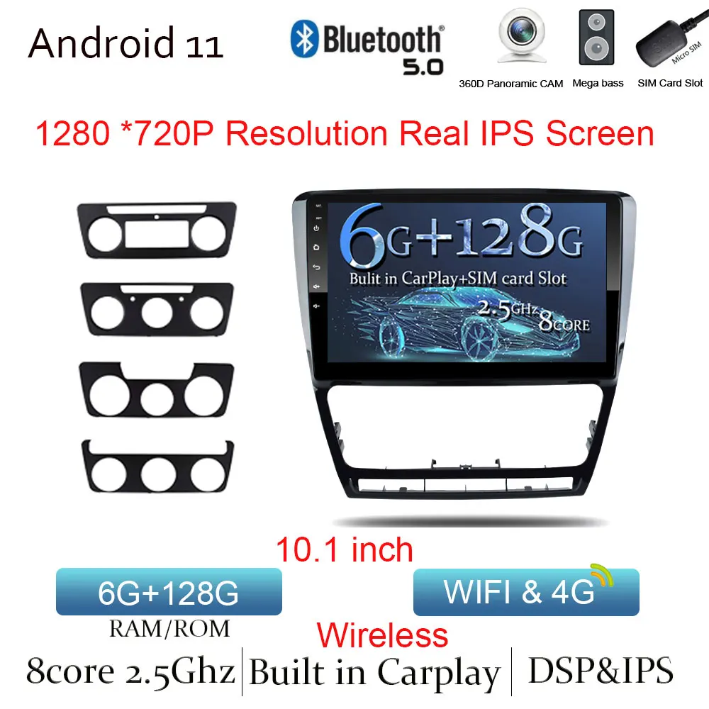 Автомагнитола на Android 11 для Skoda Octavia 2 2008-2013, мультимедийный видеоплеер с GPS-навигацией, без DVD, 2 Din, Восьмиядерный