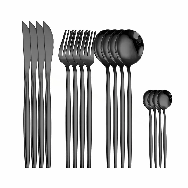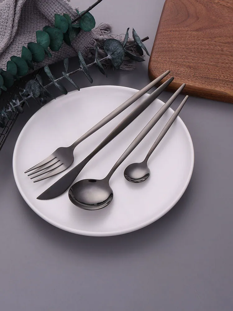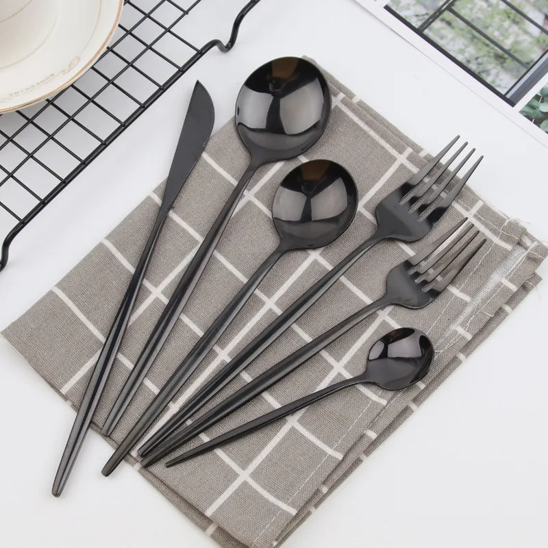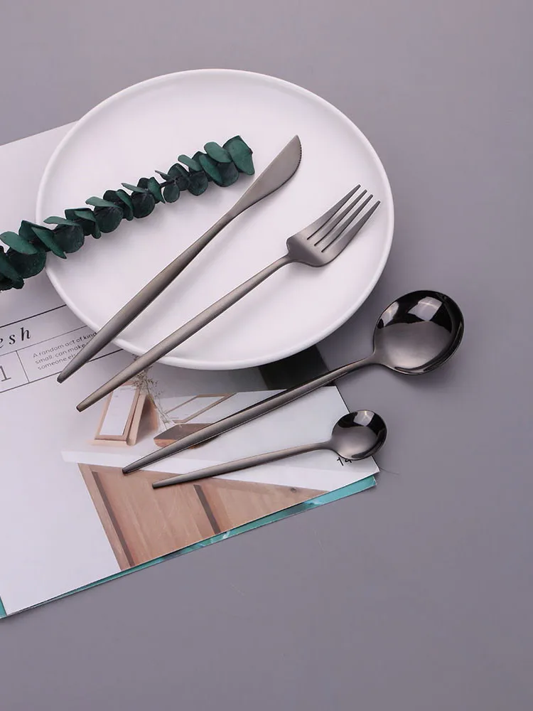 Набор столовых приборов из нержавеющей стали, черная посуда, набор вилок и ножей, кухонный набор обеденной посуды черные столовые приборы, экологически чистые столовые приборы