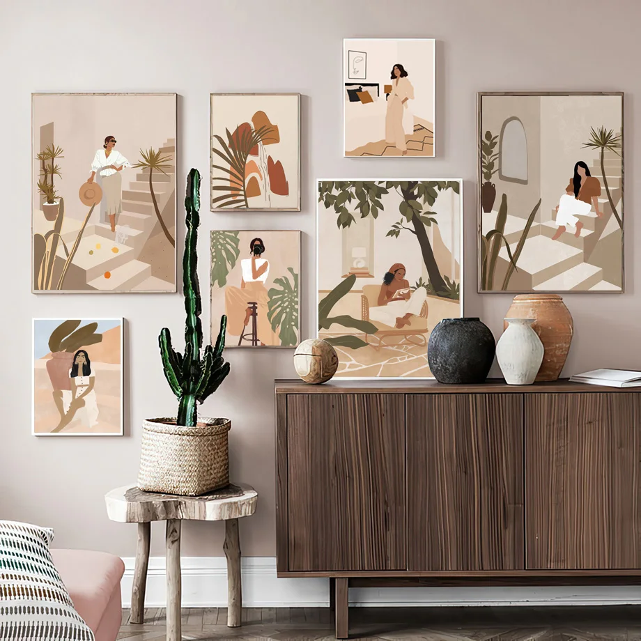 Винтажные постеры и принты в скандинавском стиле для девочек, ваза, цветов, растений, Листьев, бохо, настенная живопись на холсте, настенные картины для декора гостиной