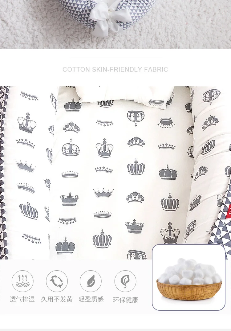 Портативная детская кровать 85*50 безопасное детское гнездо из хлоп...