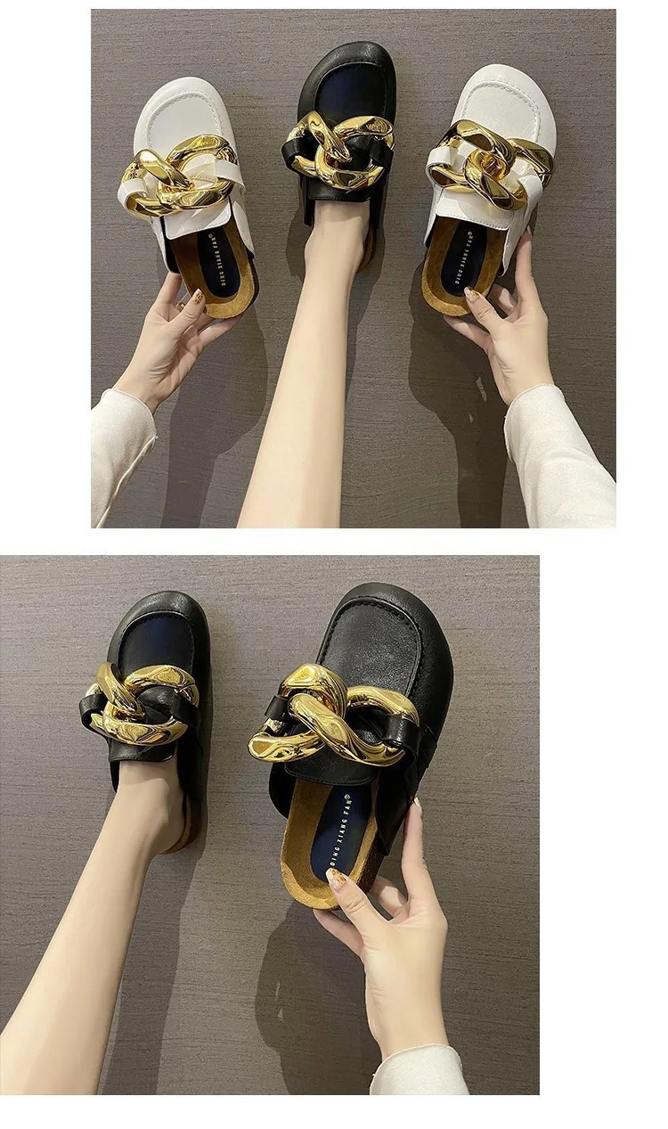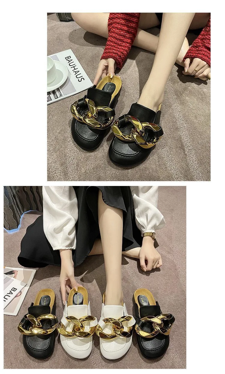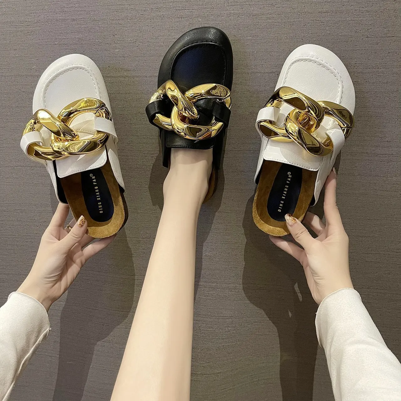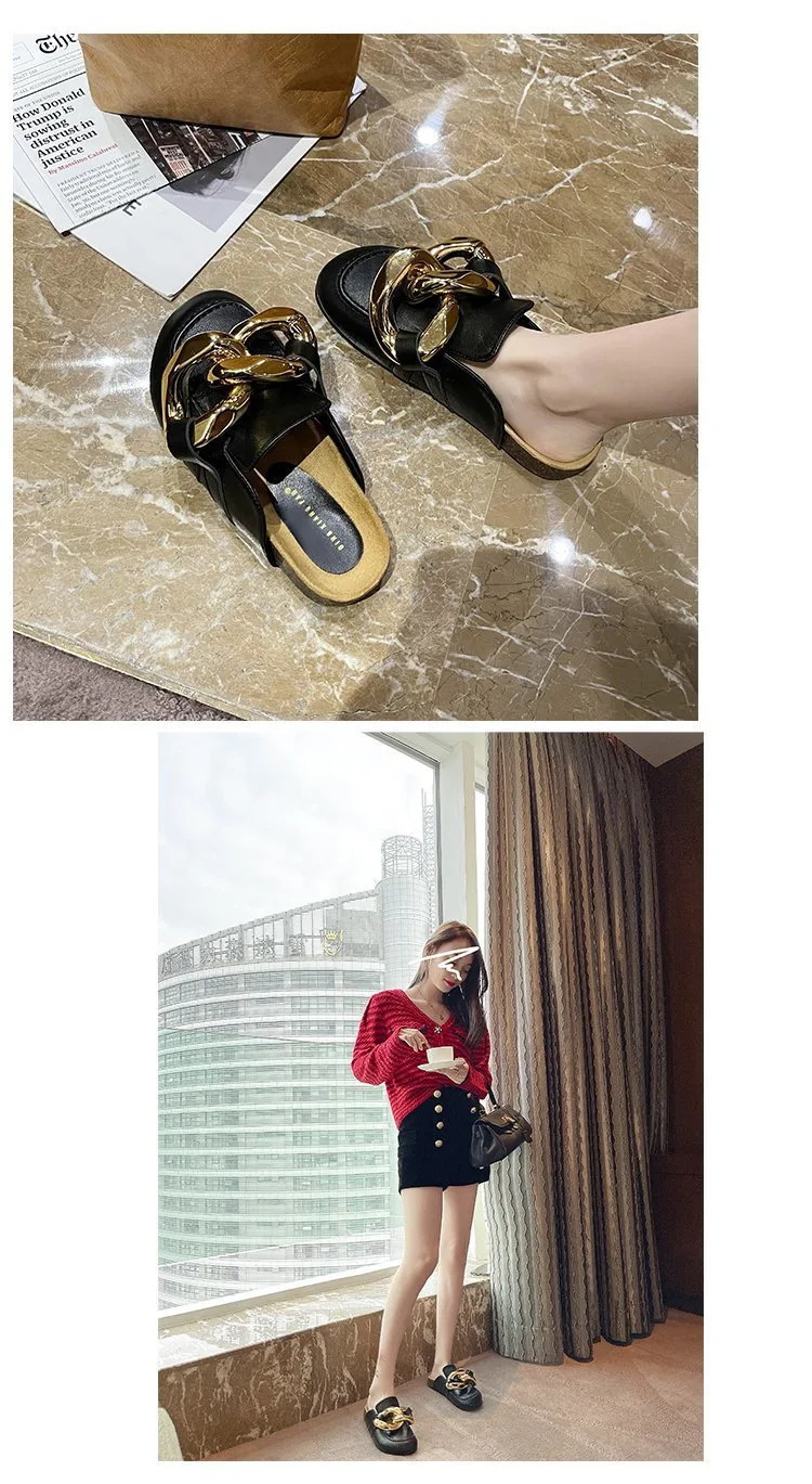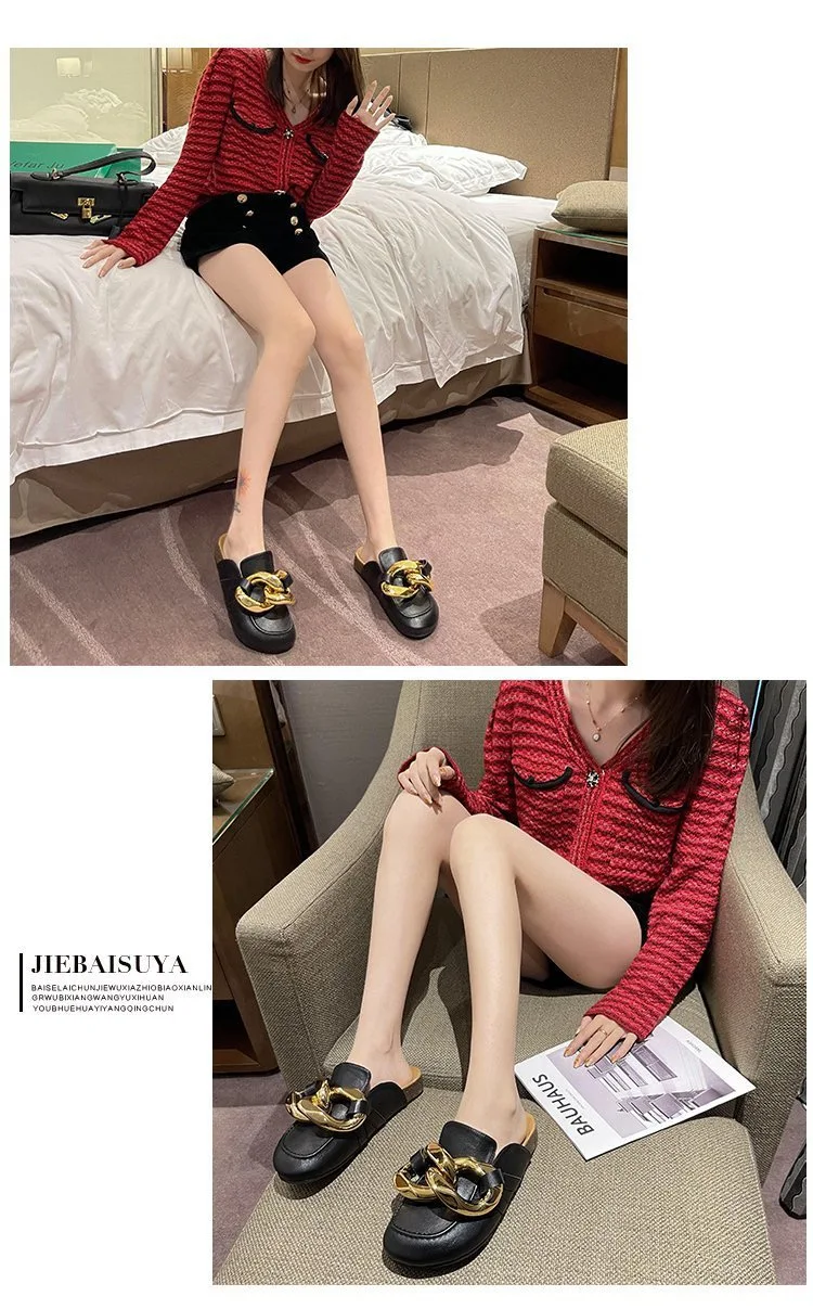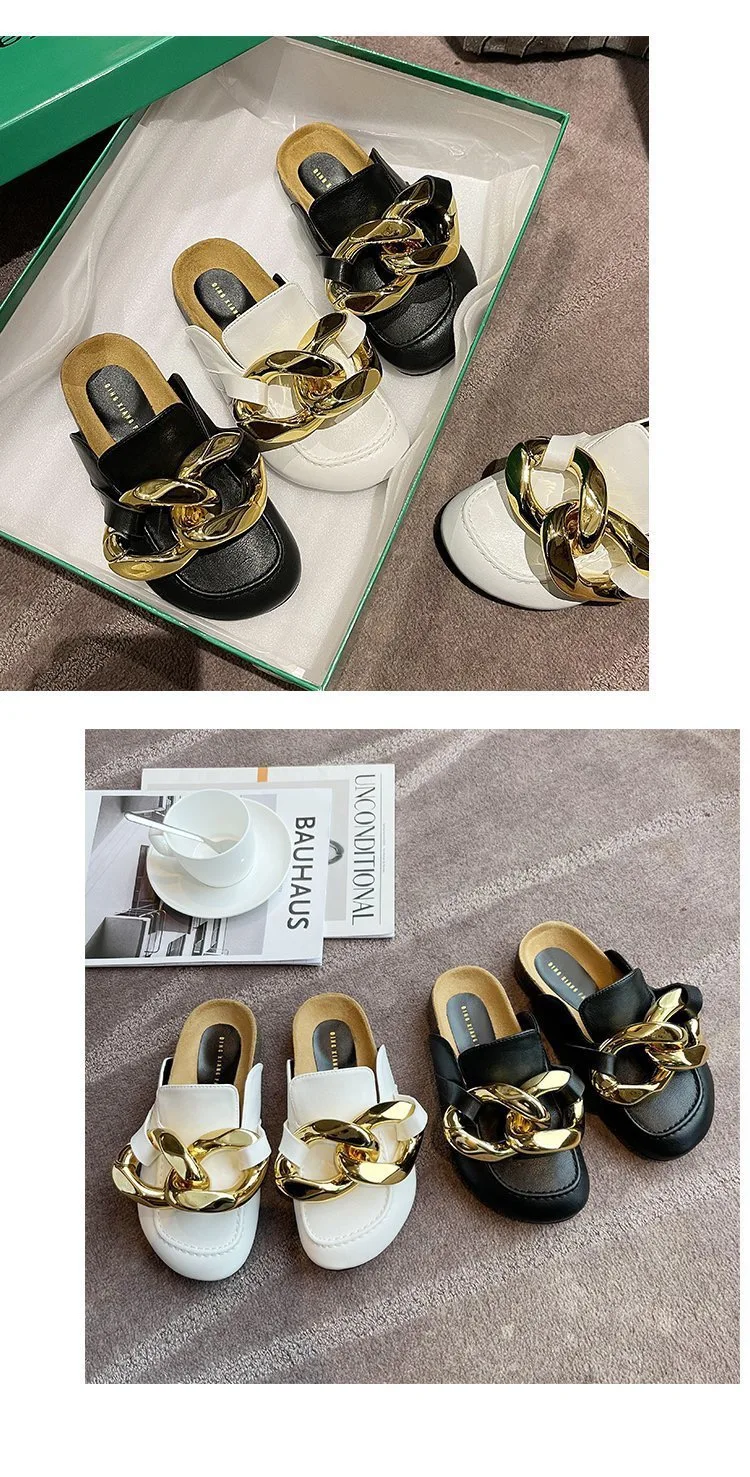 Женские брендовые тапочки с золотой цепочкой, сезон весна-лето, новинка, Брендовые однотонные Индивидуальные шлепанцы Baotou с круглым носком, 2021