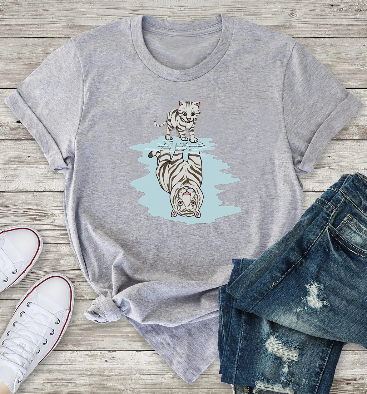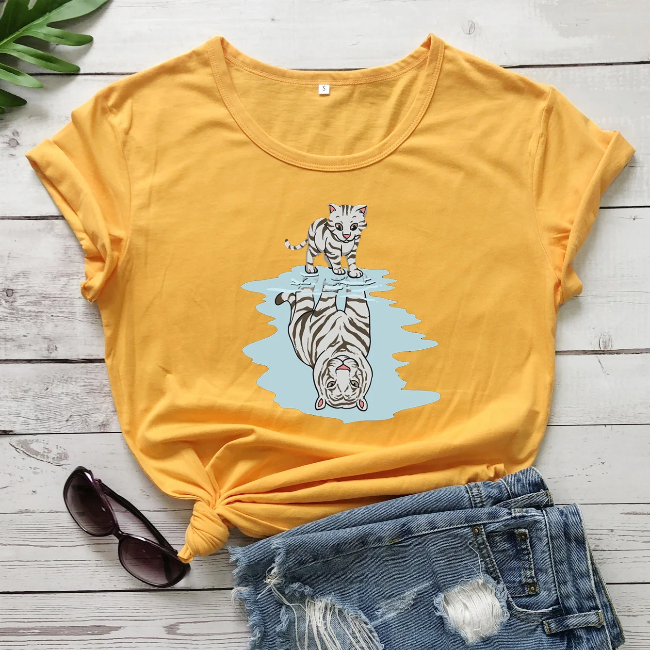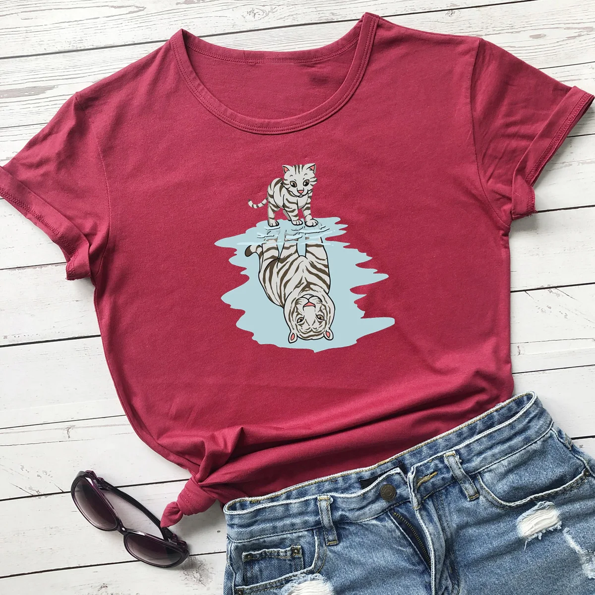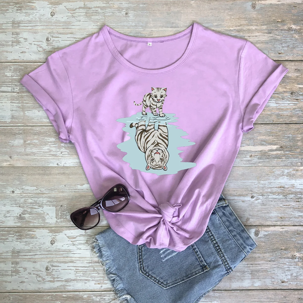 Цветная футболка с рисунком дикой жизни кошки и тигра, 100% хлопок, женская модная повседневная футболка унисекс в уличном стиле, топ, футболка