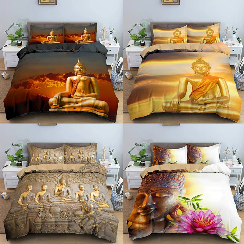 Статуэтка сидящий Будда цифровые печатные Постельное белье один двойной King Queen Размеры класса люкс с пододеяльником и наволочками с узором из 23 шт постельное белье