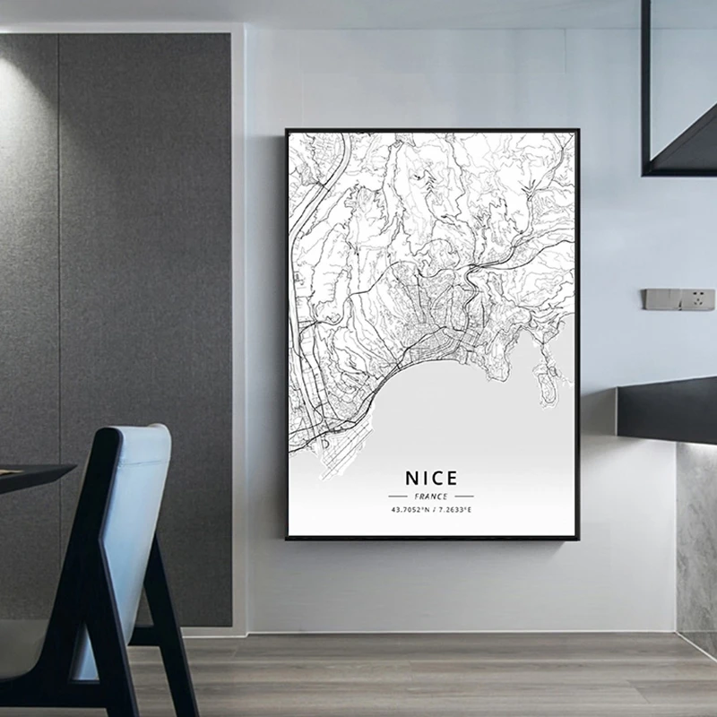 Черно-белая линия, Карта города, плакат, Италия, фотообои и плакаты...