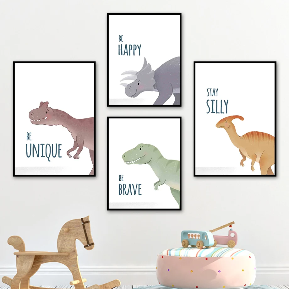 Мультяшный динозавр, Трицератопс, тираннозавр, настенная Картина на...
