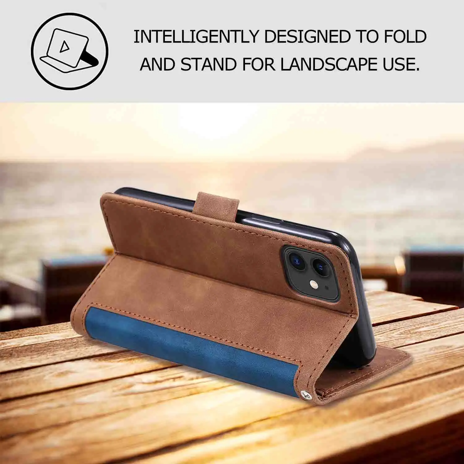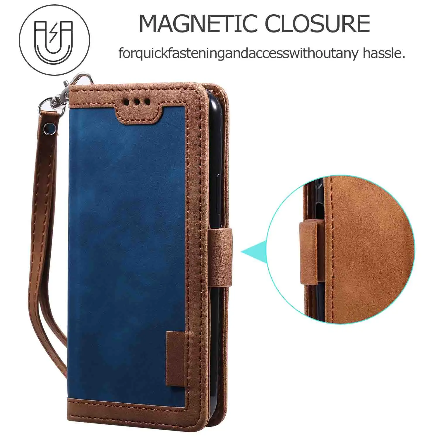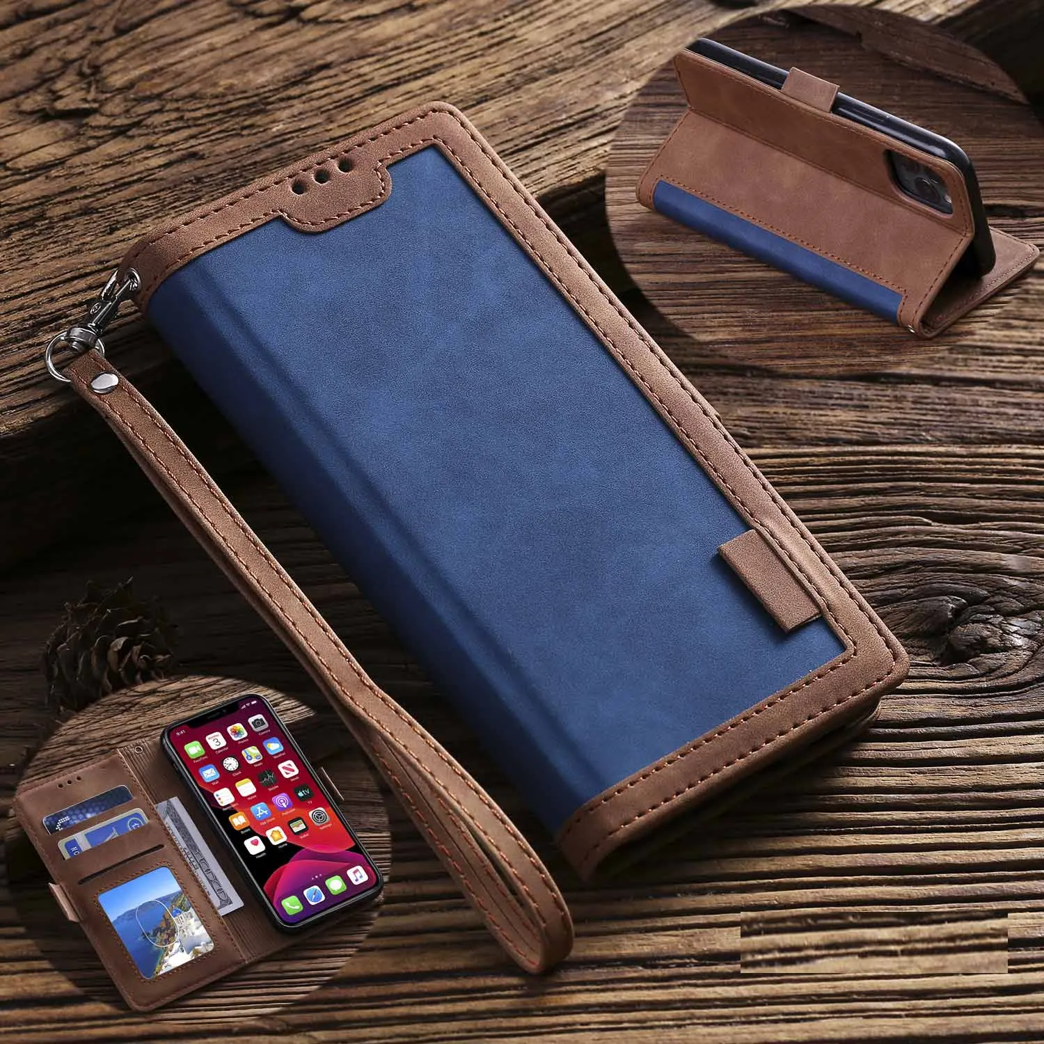 Чехол с откидной крышкой для iPhone 12 Pro Max 12 11 Pro XR XS макс 7 8 Plus из искусственной кожи Винтаж цветовой контраст Магнитный кошелек наручный ремешок к чехлу