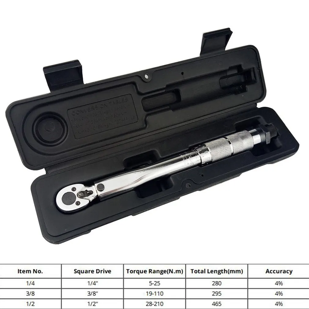 Особенности:1. Поставляется в выдувном литом чехол для удобного хранения и транспортировки. Идеально подходит для профессионального или повседневного использования.2. Изготовлен из хромированной ванадиевой стали для прочности и долговечности3. Каждый болт на современном транспортном средстве имеет крутящий момент, и ключ с крутящим моментом необходим, чтобы точно определить, насколько плотно болт.4. Плавный механизм действия обеспечивает точные настройки крутящего момента каждый раз5. Полностью ключ с регулируемым крутящим моментом с храповой головкой, которая при установке обеспечивает правильное натяжение и настройки загрузки применяются к гайкам и болтам.6. При достижении требуемого крутящего момента гаечный ключ производит звуковой щелчок и небольшое напряжение.7. Крутящий момент только по часовой стрелке, но также может быть использован для отмены переключателем рычага на трещотке.Описание:1. Звуковой и palpable сигнал указывает автоматически, когда достигается значение крутящего момента.2. Идеально подходит для небольших транспортных средств/велосипедов и т. Д.Характеристики:Название продукта: динамометрический ключМатериал: металлТип: 1/4(5-25 нм), 3/8(19-110 нм), 1/2(28-210 нм) (опционально)Цвет: серебристыйПараметры: 1/4in, 3/8in, 1/2inВес: 800 г/1.76lb, 1100 г/2.43lb, 1700 г/3.75lbКрутящий момент: 5-25Nm, 19-110Nm, 28-210NmОбласть применения: для профессионального или случайного использованияПосылка:Размер посылка: 330x80x6 0 мм/12.99x3.15x2.36inВес посылка: 880 г/фунтовПластиковая коробка посылкаПосылка включает в себя:1 х динамометрический ключ1 комплект аксессуаров