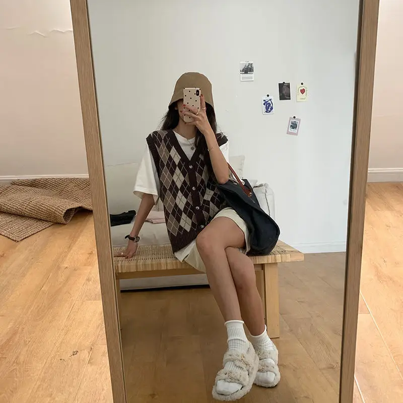 Жакет женский вязаный, без рукавов, с ромбовидным узором