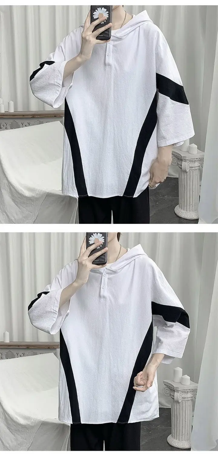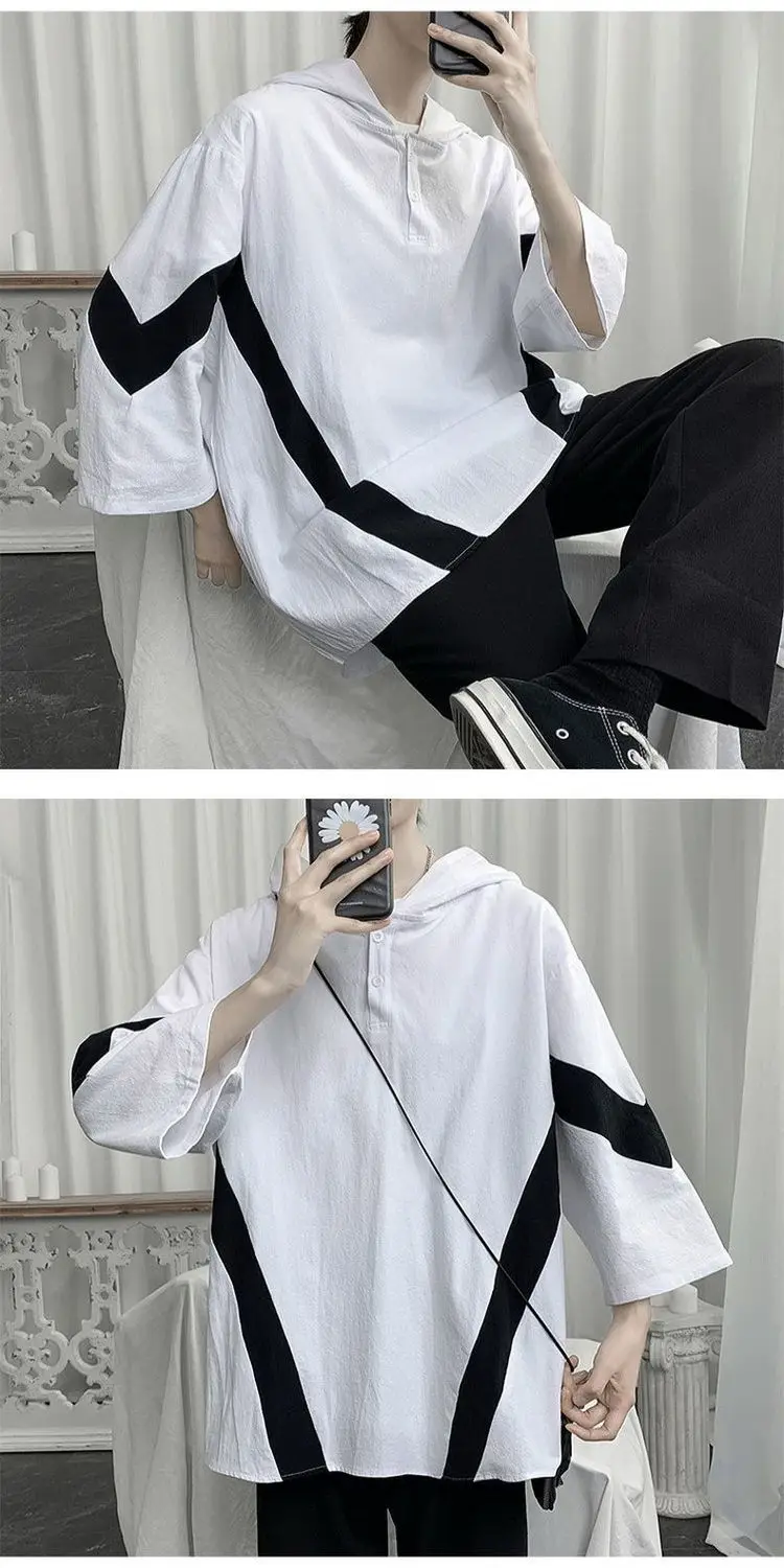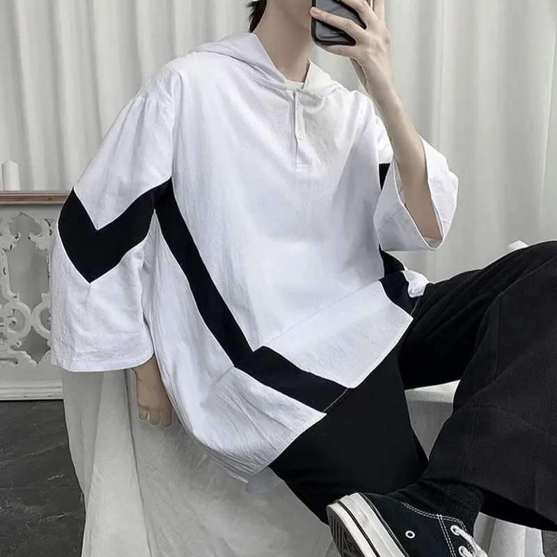 Футболка мужская с капюшоном, белая, лето 2021 г., с полурукавами