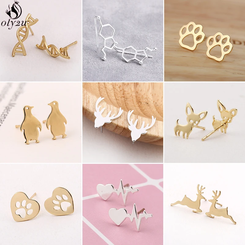 Модная обувь с принтом кошачий коготь Серьги для женщин и детей, модные серьги ювелирные изделия прекрасный ДНК оленя собаки чихуахуа серьга-гвоздик для пирсинга Brincos, можно носить с 2021