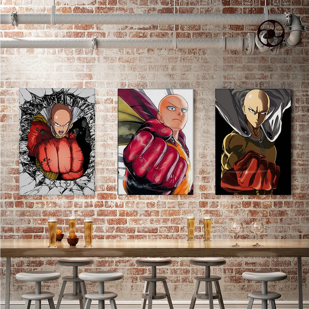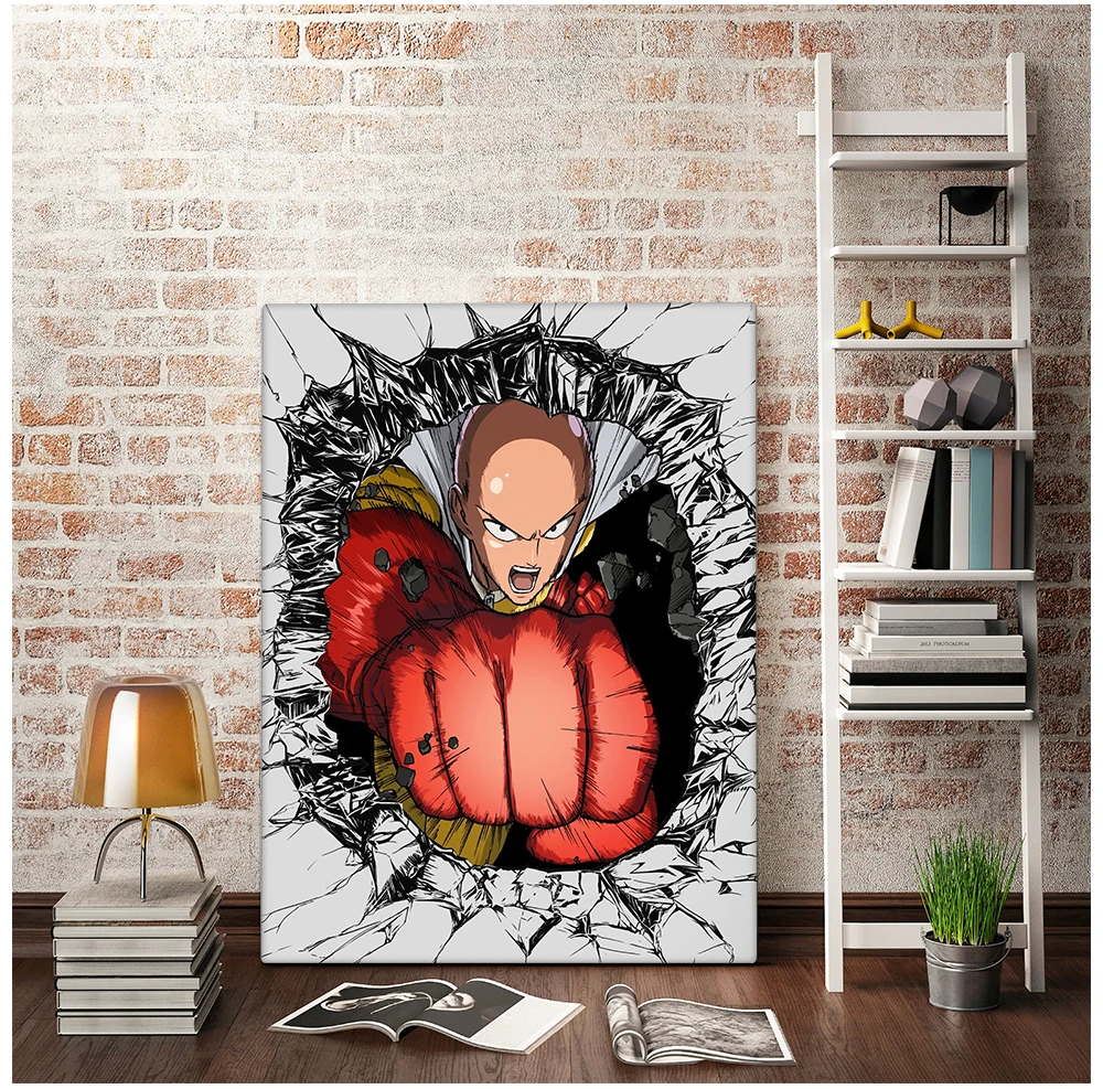 Холщовый плакат аниме Сайтама One Punch Man для декора комнаты модульная Настенная Наклейка для детской комнаты