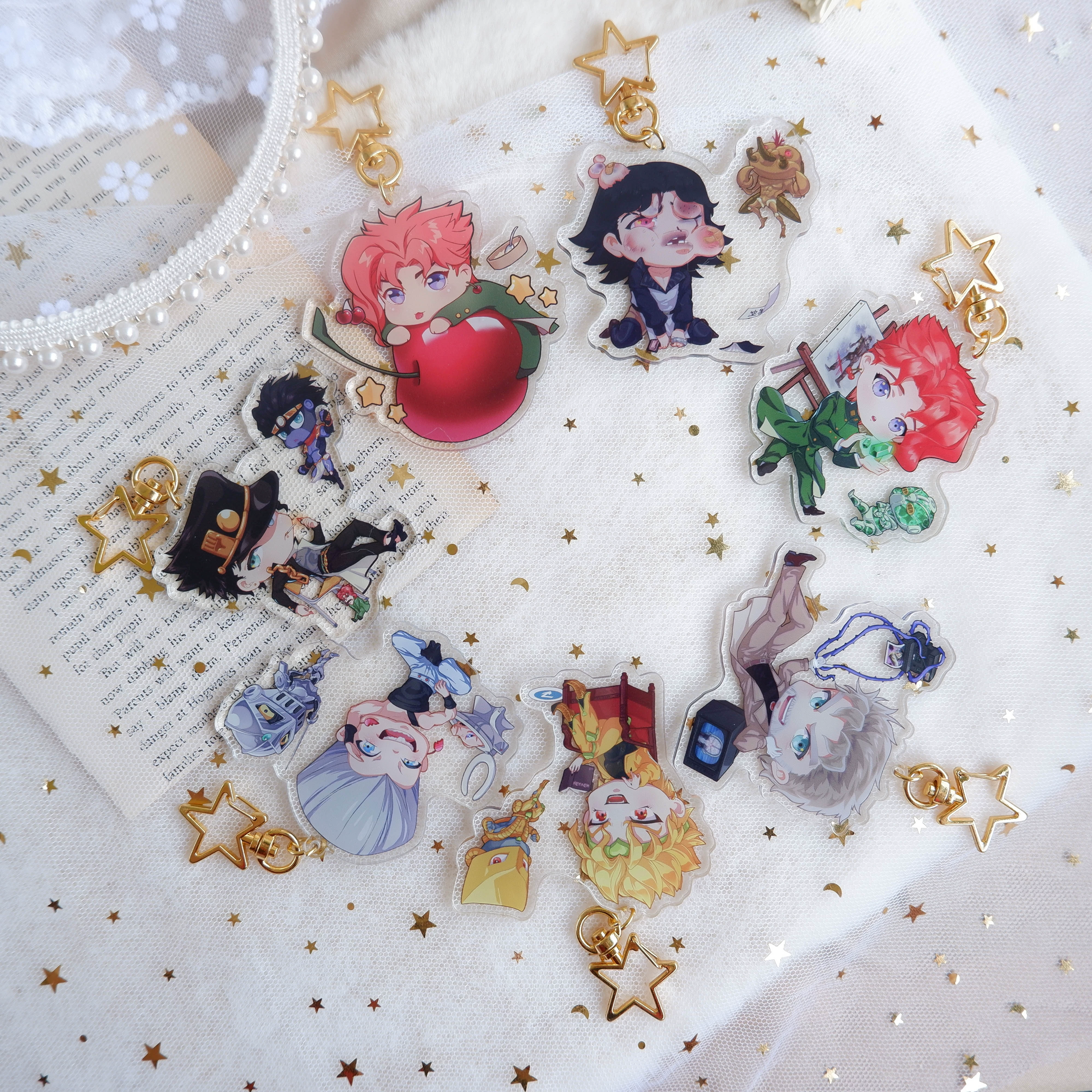 Брелок с невероятными приключениями Джоджо, тема Рохан кишибе, Джозеф, Джоджо, йолине, куджой, Какуин, Нориаки, брелок с акриловым шармом
