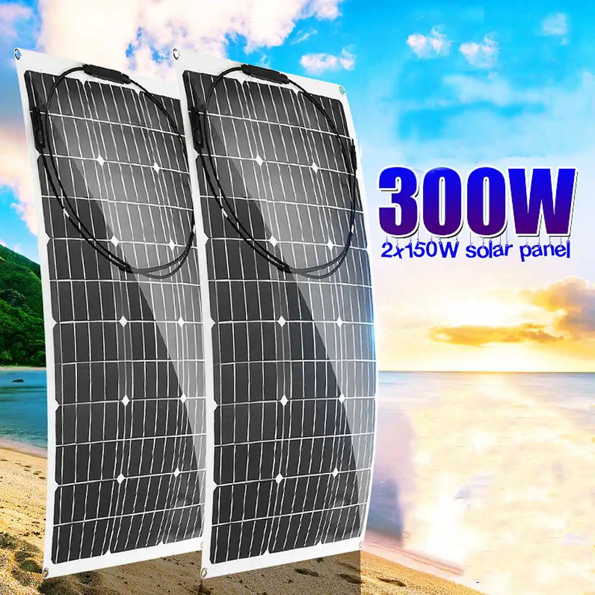 Полугибкая монокристаллическая солнечная панель, 300 Вт150 Вт, 18 в, кабель сделай сам, водонепроницаемая, для улицы, автомобиля, RV, перезаряжаемая энергосистема
