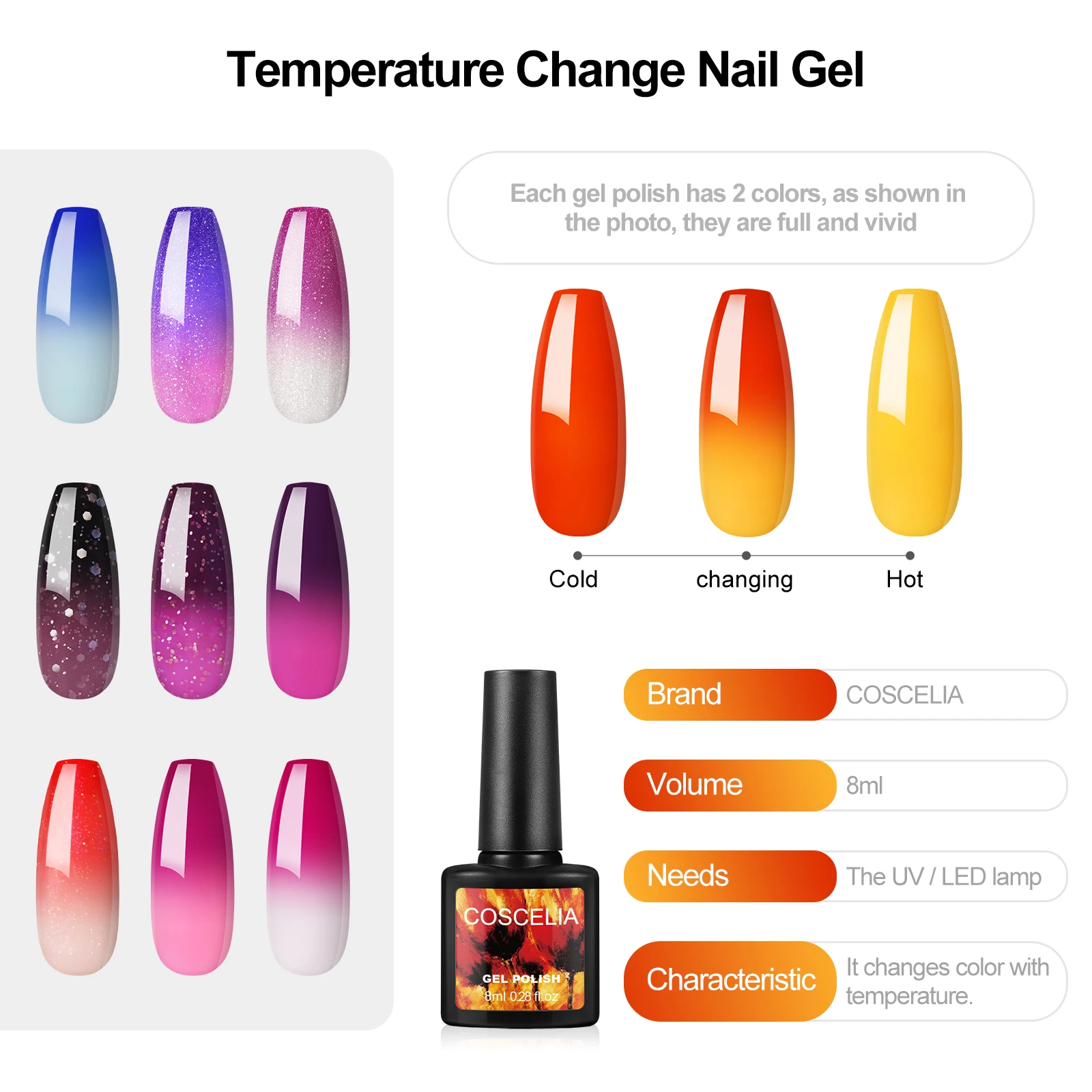 COSCELIA термальный лак для ногтей Гель-лак Температура Цвет Изменение эффект маникюрного геля Лаки верхнее покрытие для база для нейл-арта