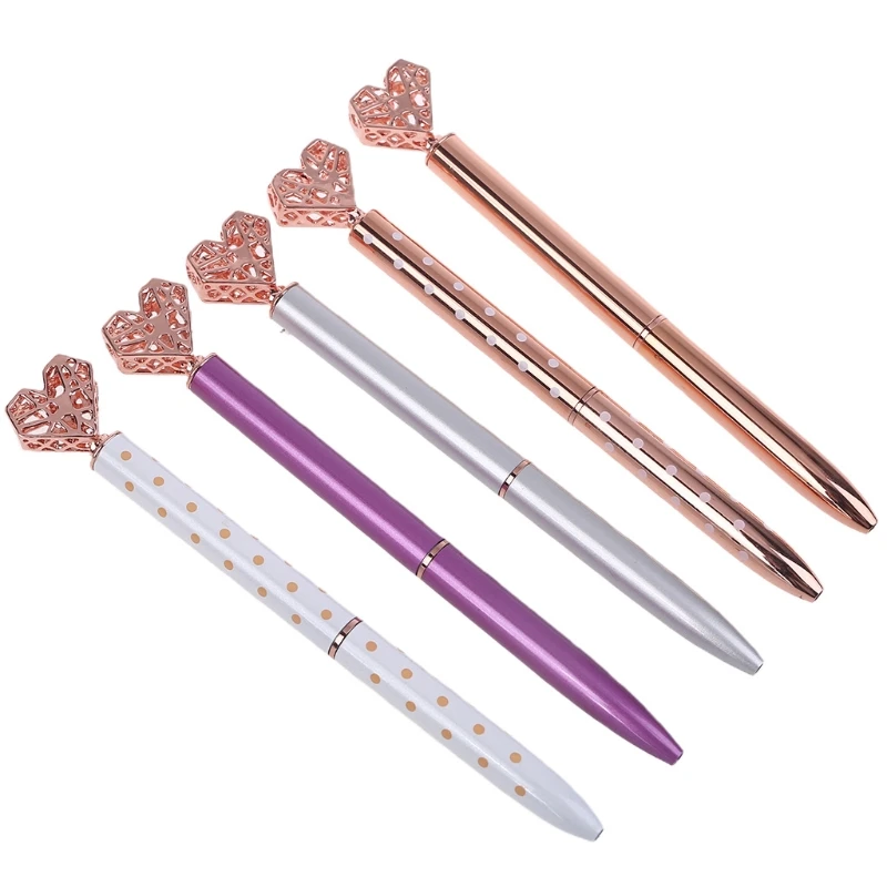 5 шт. ручка с большими кристаллами, ручка в форме сердца, металлическая шариковая пеншол и канцелярские принадлежности, розовое золото/серебро/белый/фиолетовый/Золотой, включает 5 стержней для ручек, черные чернила