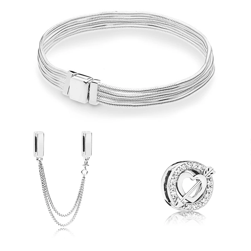 Серебряная цепочка s925 с Амуром и стрелой подходит для оригинального браслета, подарочный набор для женщин, браслет с шармами, ювелирные изделия для рукоделия