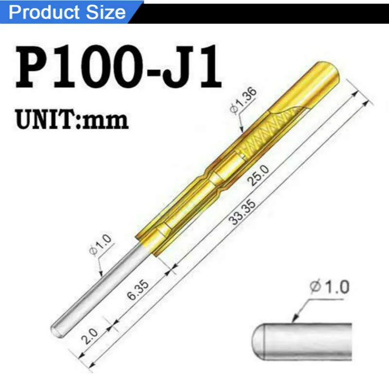 100 шт.упак. из P100-J1 Весна Тесты зонд пружинный контакт Пружинные контакты SMTSMD наружный Диаметр 1,36 мм Игла Длина 33,35 мм для печатной платы Тесты Инж