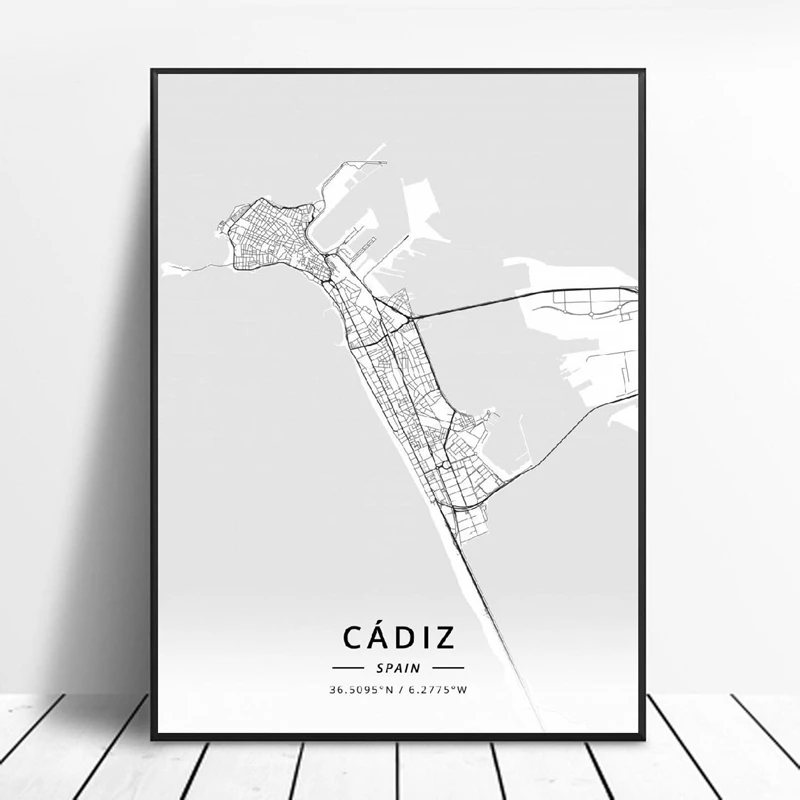 Картахена, черно-белая карта, плакат, художественные рисунки, домаш...