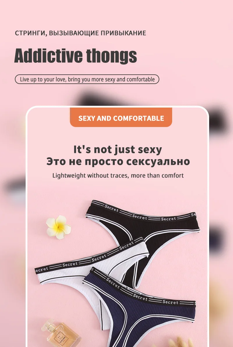 3 шт.компл. женские стринги, брифы, мягкое удобное сексуальное нижн...