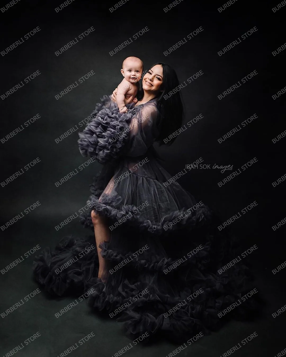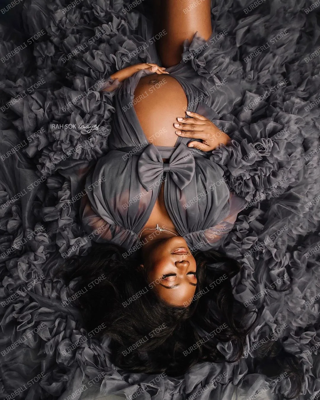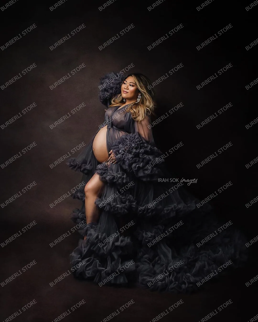 Уникальные темно-серые многоярусные тюлевые платья для беременных для фотосъемки прозрачные расклешенные рукава платье для беременных женщин длинные халаты для будущей мамы