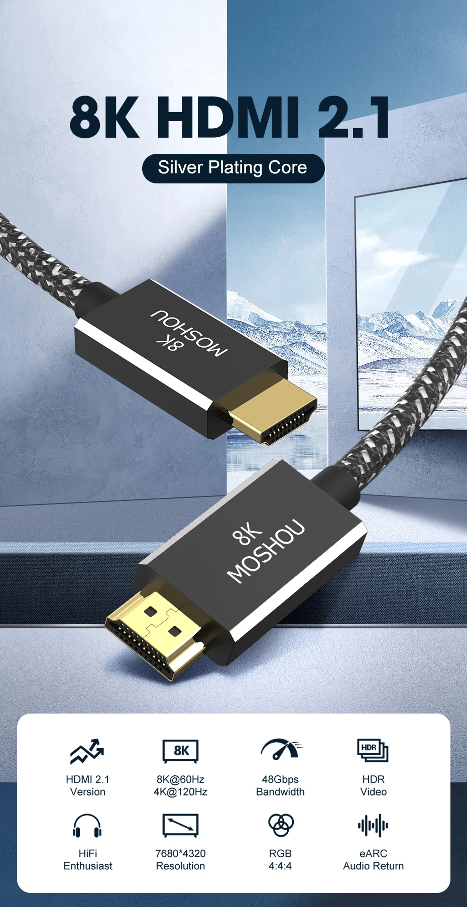 HDMI кабель MOSHOU ARC 2,1, кабель с пропускной способностью 48 Гби...