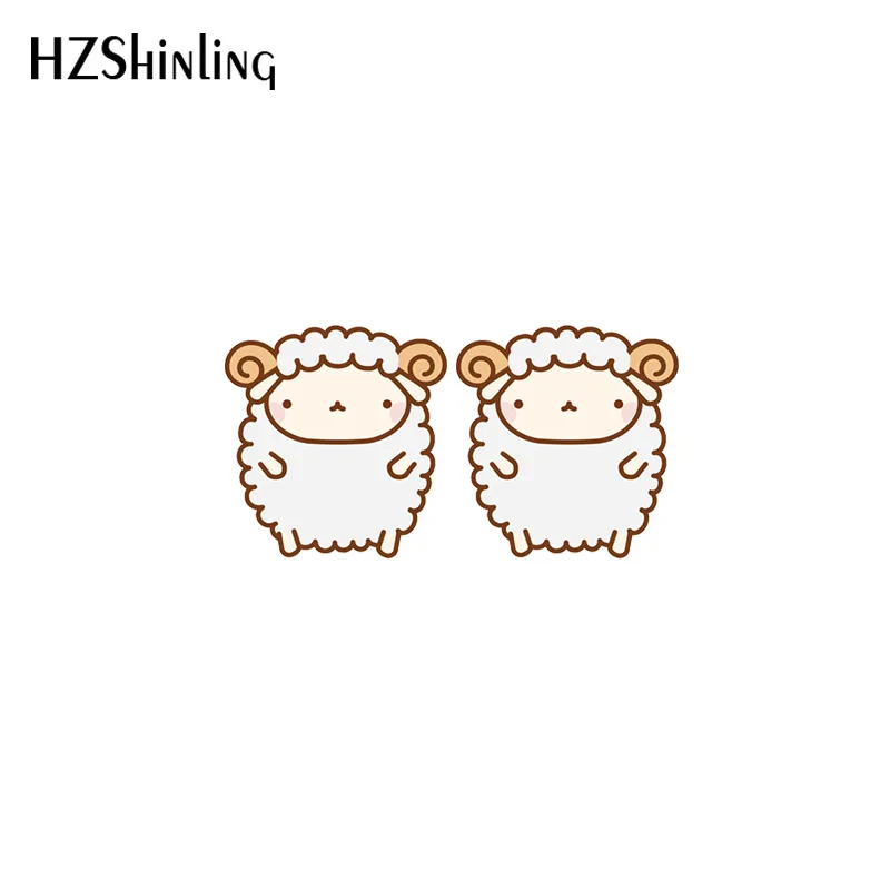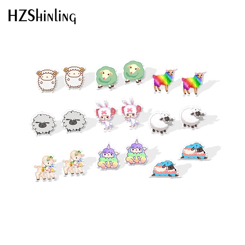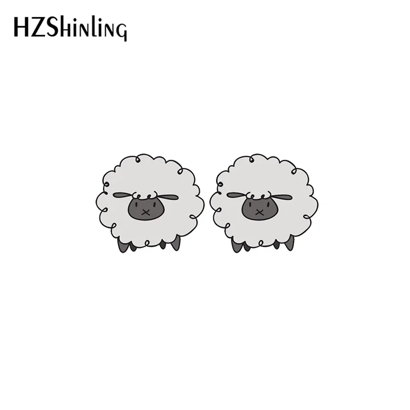 Серьги-гвоздики в виде овечки, акриловые, эпоксидная смола