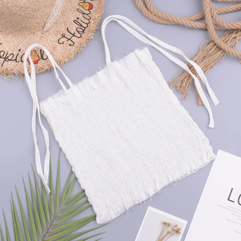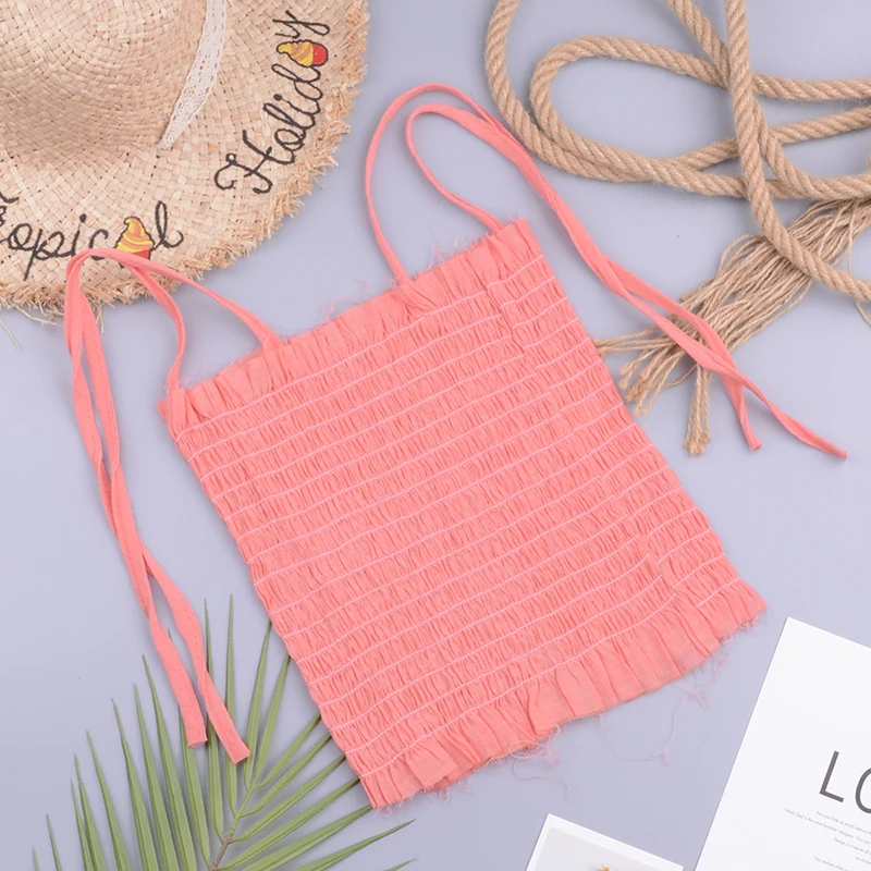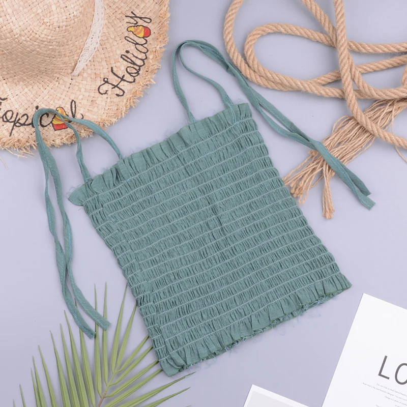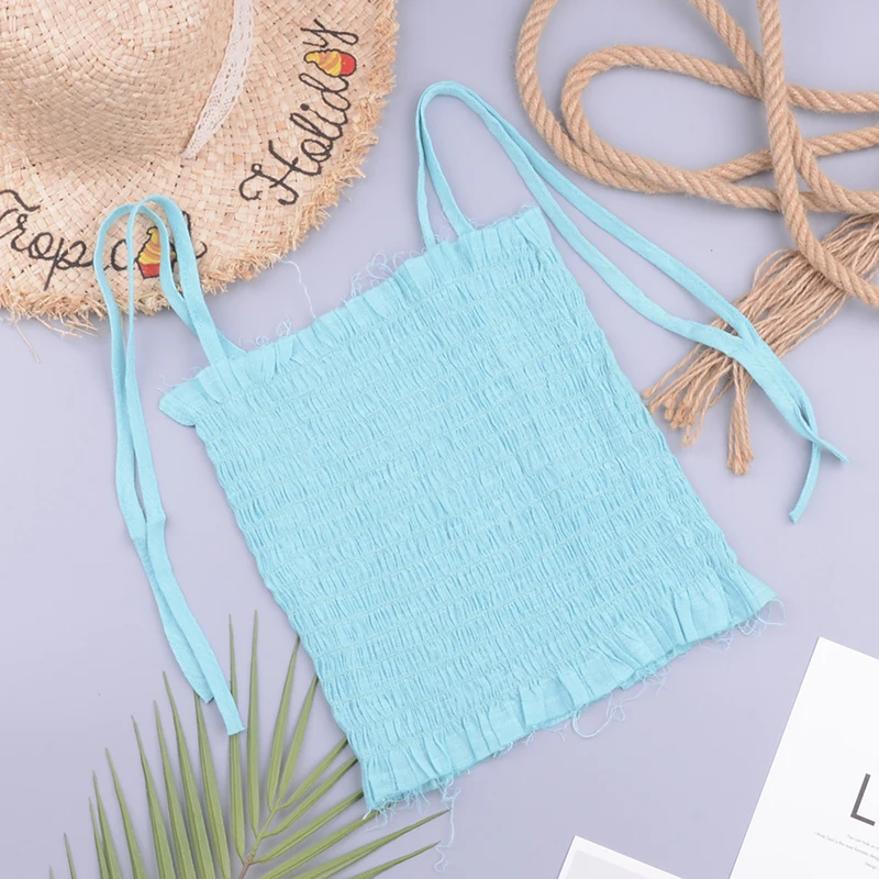 Шифоновая пляжная одежда, топ-труба, женский модный плиссированный укороченный топ с рюшами, сексуальные бюстье, футболки, женские майки, топы на бретельках, праздничная пляжная одежда