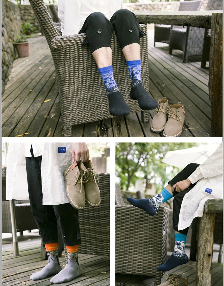 Носки мужские, осенне-зимние, с изображением звездной ночи, Ван Гога