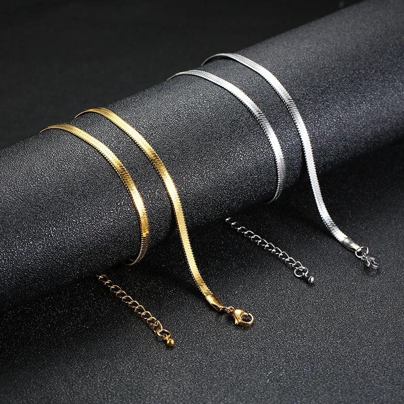 Очаровательное ожерелье-чокер Женская цепочка в виде змеи из нержавеющей стали золотистого и серебристого цвета, плоские Чокеры в елочку для девочек 4 мм