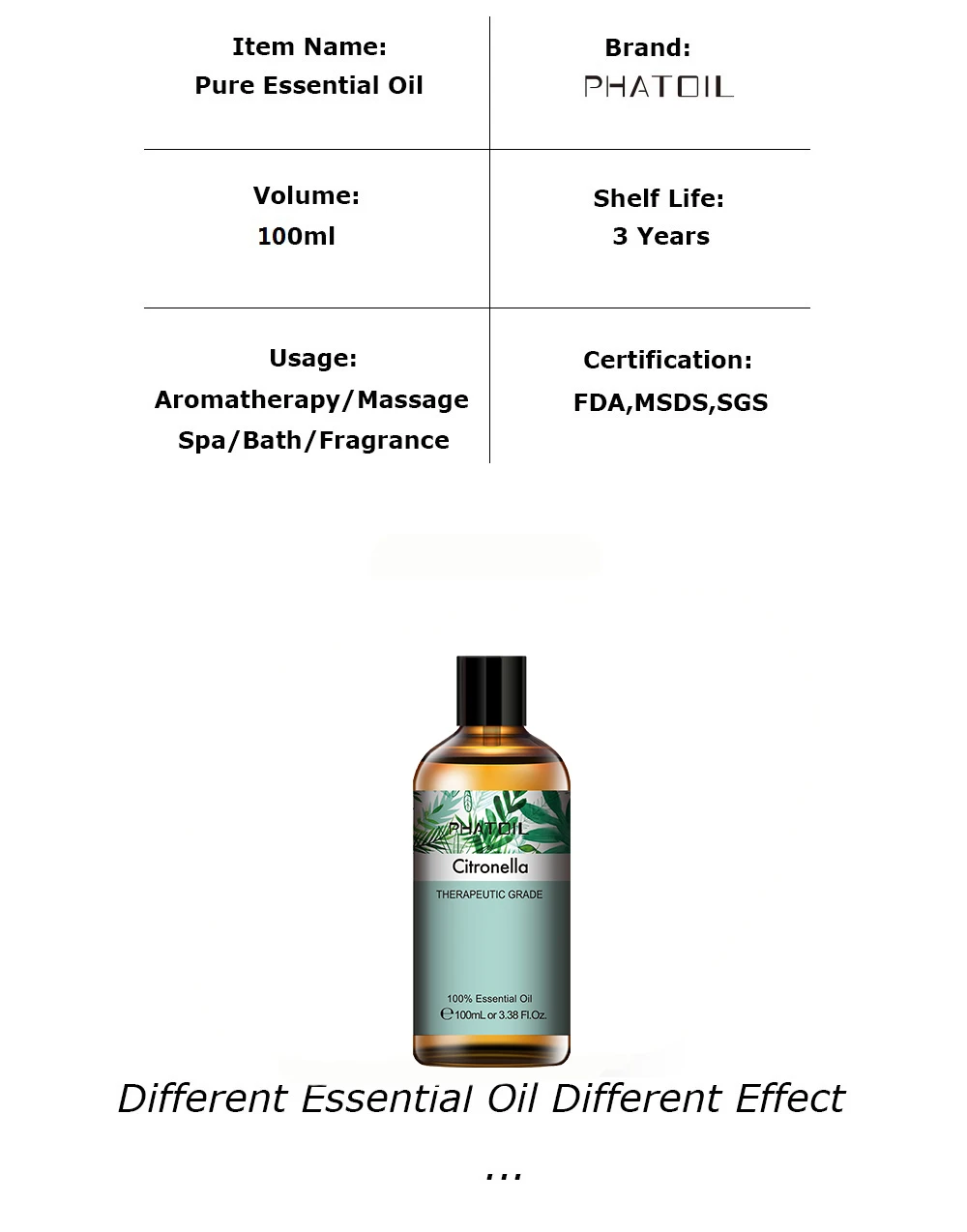 Ароматическое эфирное масло Lemongrass, 3,4 унций, 100 мл, натуральная мята, цитронелла, чайное дерево, ванильный можжевельник, герани, ромашки, масло жожоба