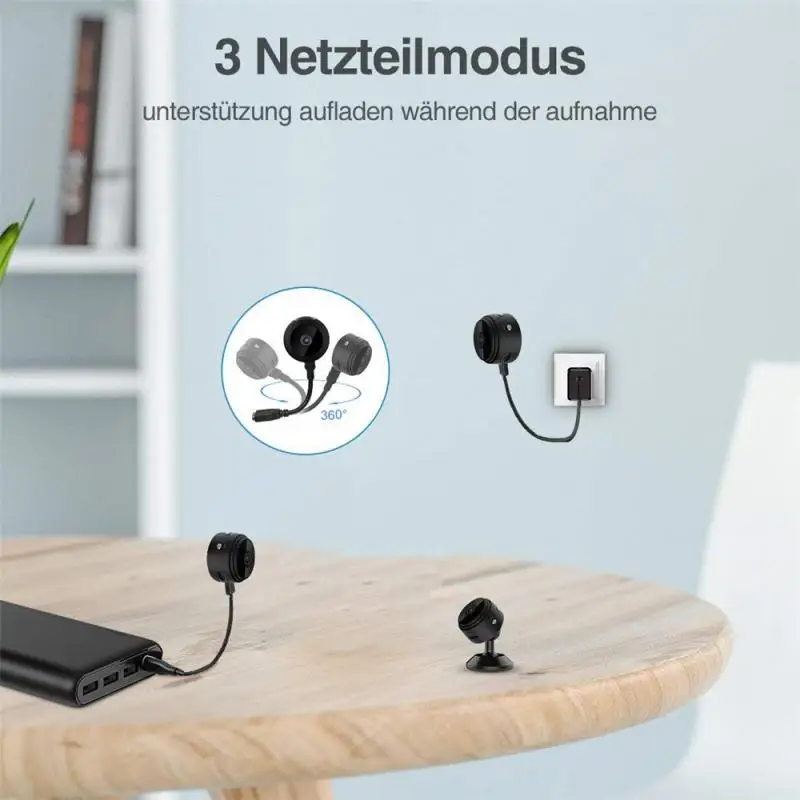 -Эта маленькая ванная комната имеет встроенный Магнит, может хорошо работать с любым железным материалом, легко помещается в любом месте. Эта маленькая камера с жестким зарядным кабелем и волшебным основанием, при зарядке во время записи, вы можете вручную повернуть угол записи на 360 градусов.