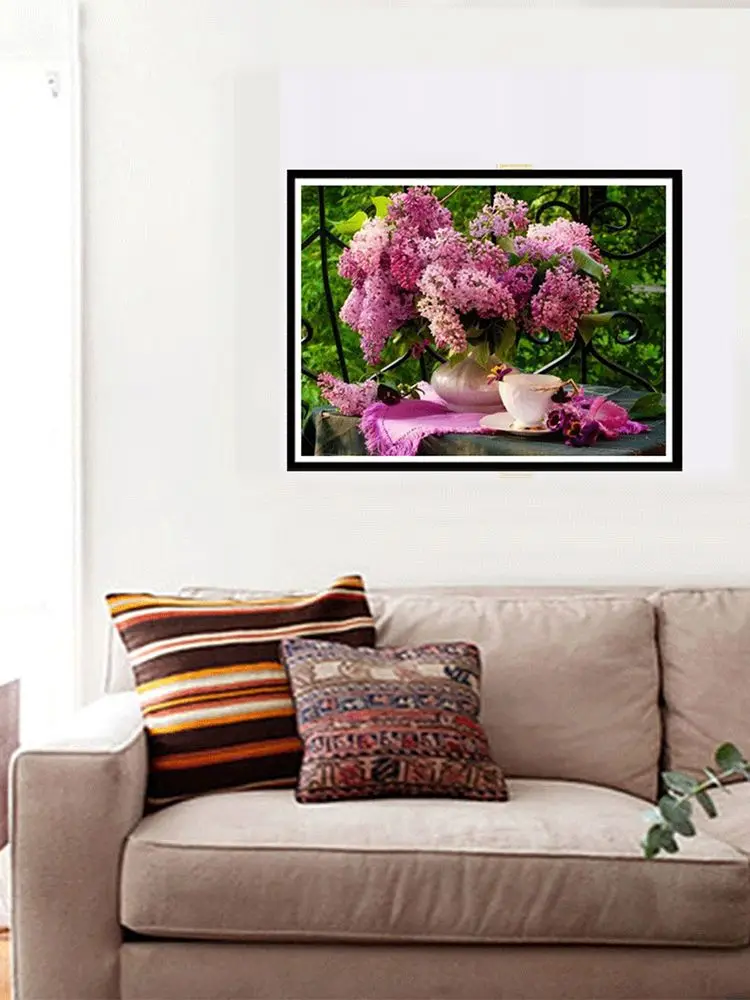 Pintura de diamantes 5D y bordado de flores de paisaje y punto de c...