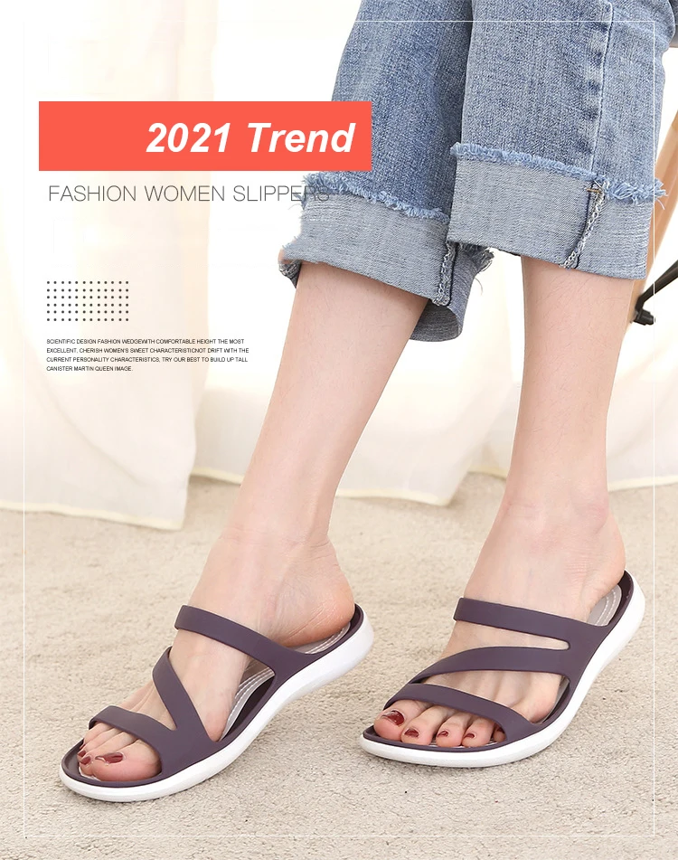 Тапочки женские для дома из ПВХ, плоская подошва, сланцы, дизайнерская обувь, лето 2021
